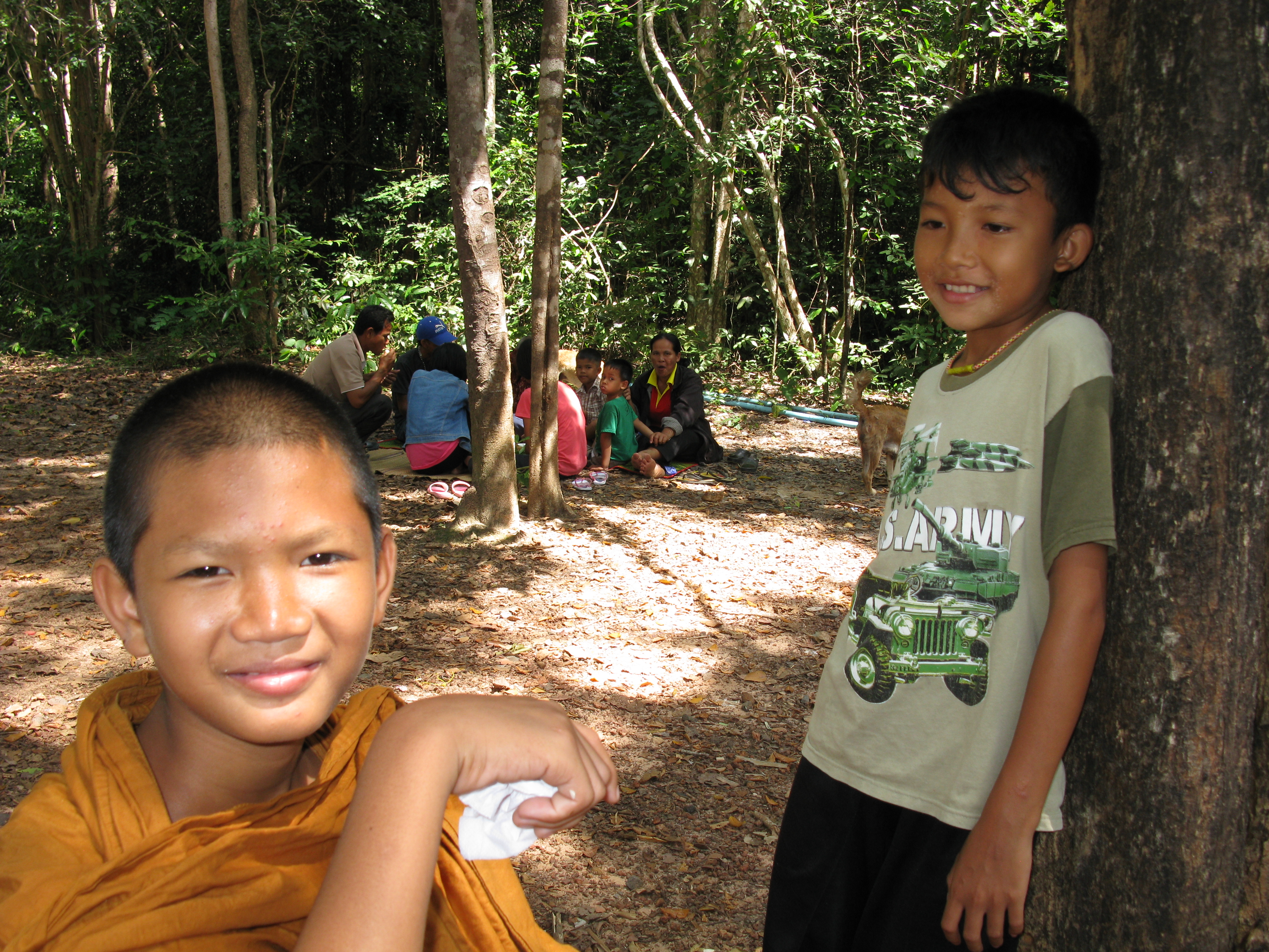 One of Ampai’s elder brothers Chouan has come after spending a year as a Monk living at the temple and on his own at a small forest temple and his son Boy has also come along. I had not seen Boy who is now 13 for few years because he is living at a distant temple where the Monks did not have any young aspirant monks and he is going to school near that temple. Bedecked in Orange robes and with shaven head he looked very serious until his mobile phone came out to play games and take photos!
