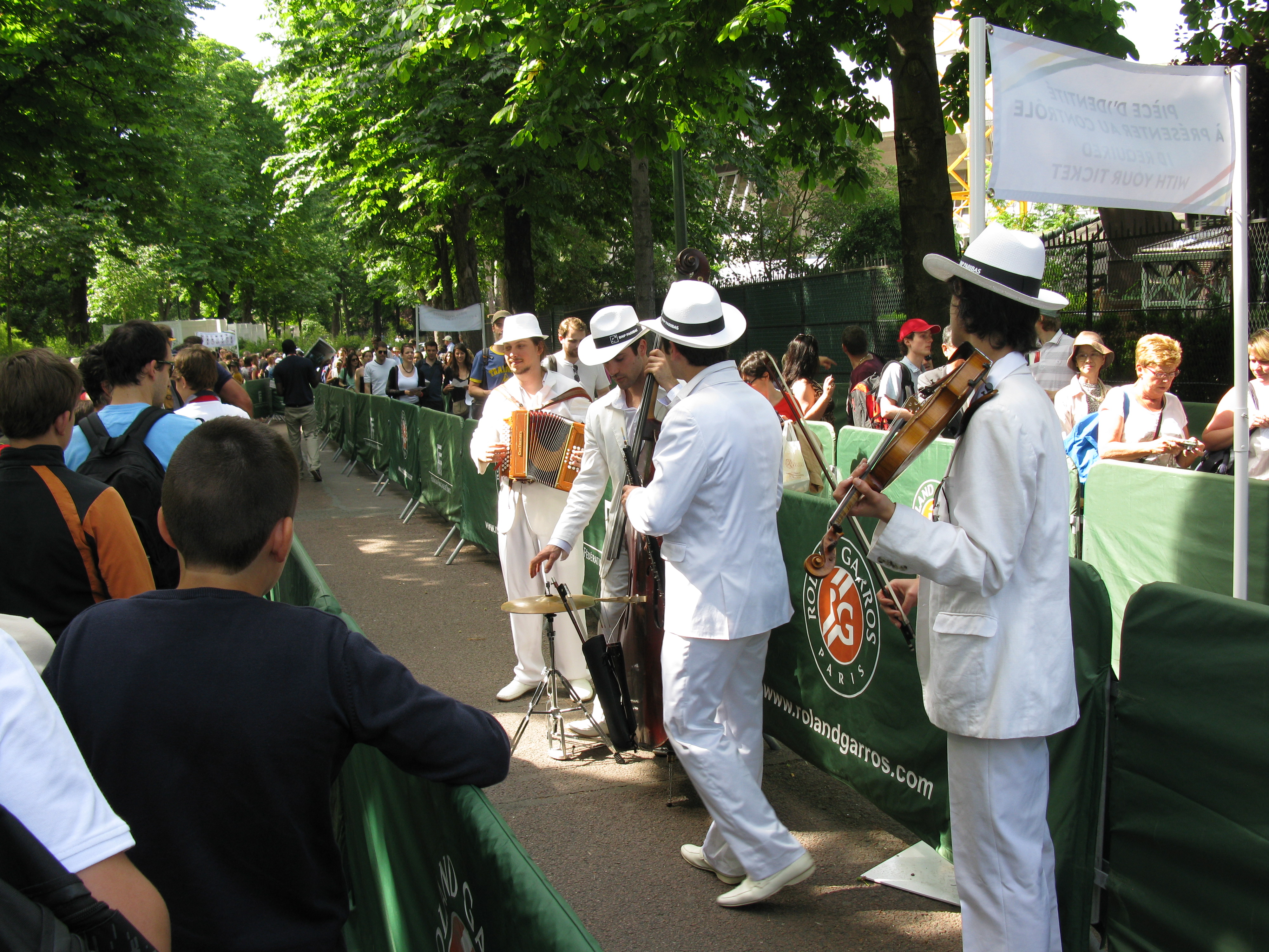 Fifthly is the sheer elegance and class of the place. The attendants at each court entrance are young, polite, attractive and well-presented whether male or female (Do they choose these kids from Model School I wonder each year as the girls are always attractive and the guys good-looking). The female attendants look as if they have come straight from the pages of Vogue in their elegant cream and clay outfits with a design ‘nod’ to earlier eras. The Males wear smart sweaters and all are unfailingly polite with a warm greeting to enjoy the day when you arrive and an Au Revoir, Bonne Journee each time you leave the court for something to eat, a toilet break or change of scenery.