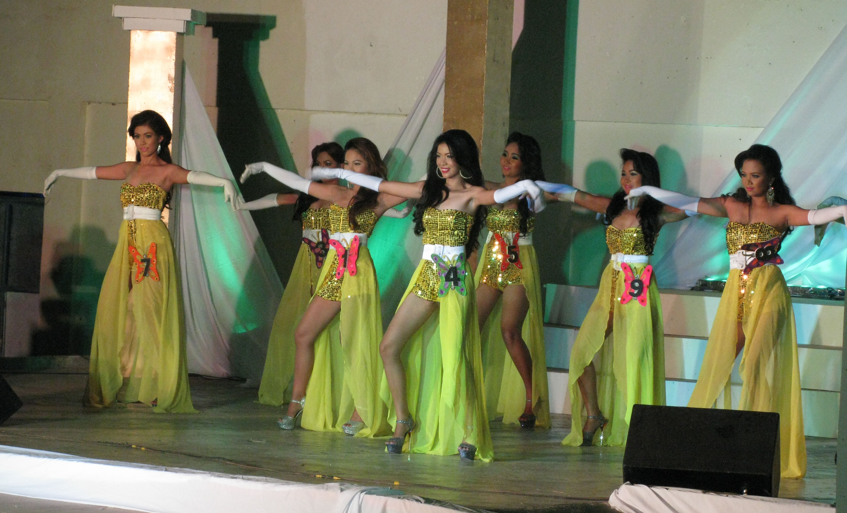 He explained we were going to see the girls dressed casually, in ballroom gowns and (of course) in swimsuits and then the ten candidates would be reduced to a final 5 who would take questions from the judges and then the two runners up and the winner would be announced and so almost three hours after Jack and I had arrived the serious proceedings began with a spectacular performance from an all-male dance group and after Mr. Cebu announced the name and age of each girl the dancers formed a fawning phalanx and escorted each girl in turn to the podium microphone where they announced their names to wild acclaim from families, friends and supporters in the audience.