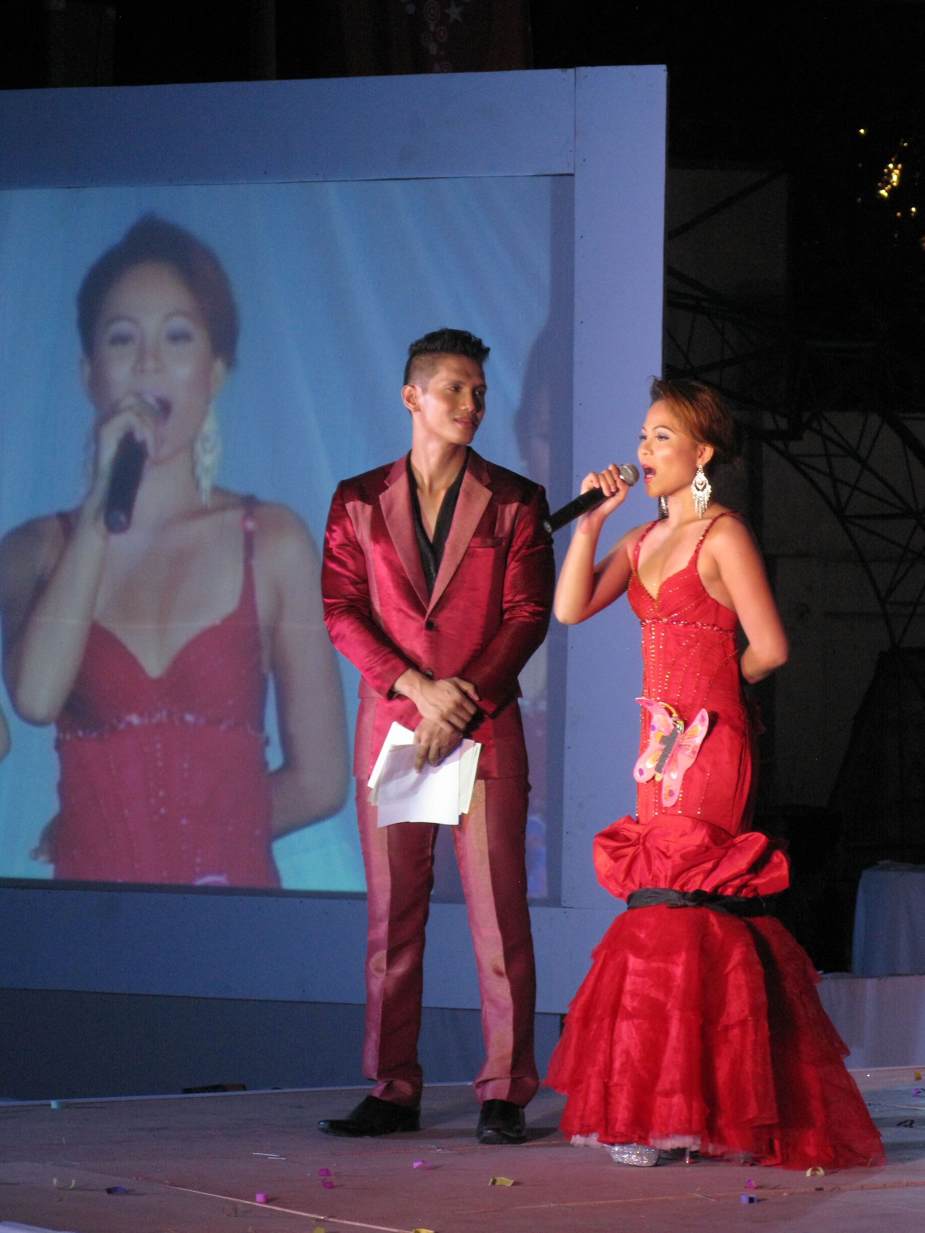 We were introduced to the five judges who seemed to comprise of local folks made good who had returned to Bantayan from Switzerland and California, the Deputy Mayor, a student just awarded a PhD scholarship and a local larger than life Dandy like almost certainly gay newspaper columnist! And then finally we were introduced to our MC for the evening who was no other than the winner (or was it Runner up) in the 2011 Mr. Cebu Competition and resplendent in his pink suit.