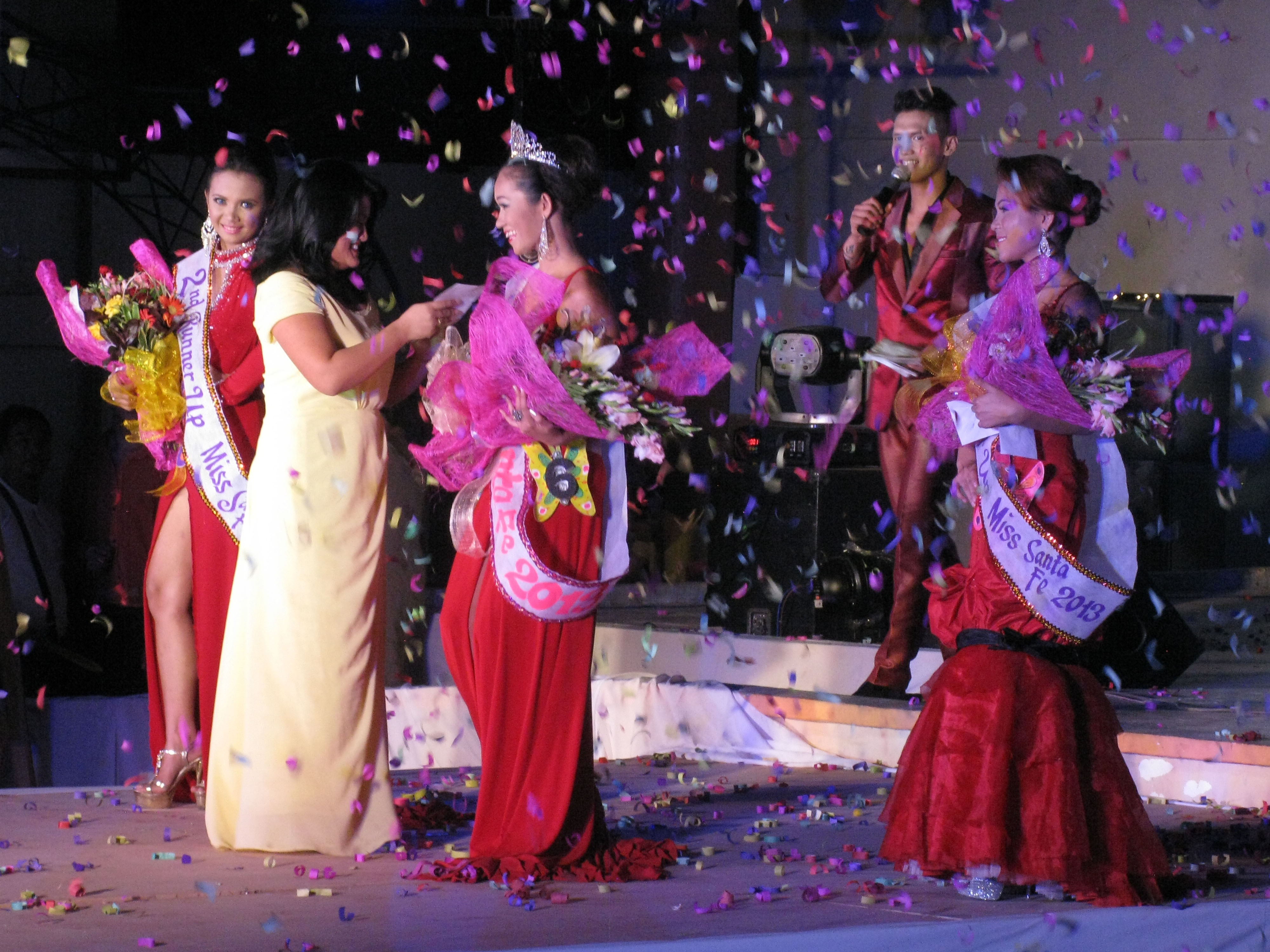 So instead we spent some of the money on a leisurely lunch and then I spent 90 minutes taking pictures of the colourful people and market stalls as Santa Fe was one big street party but the highlight was yet to come. The final of Miss Santa Fe tourism was to take place in the Towns Community Centre at 7pm in the evening and was considered to be the highlight of fiesta week and one of our waitresses Leamae was in the final.