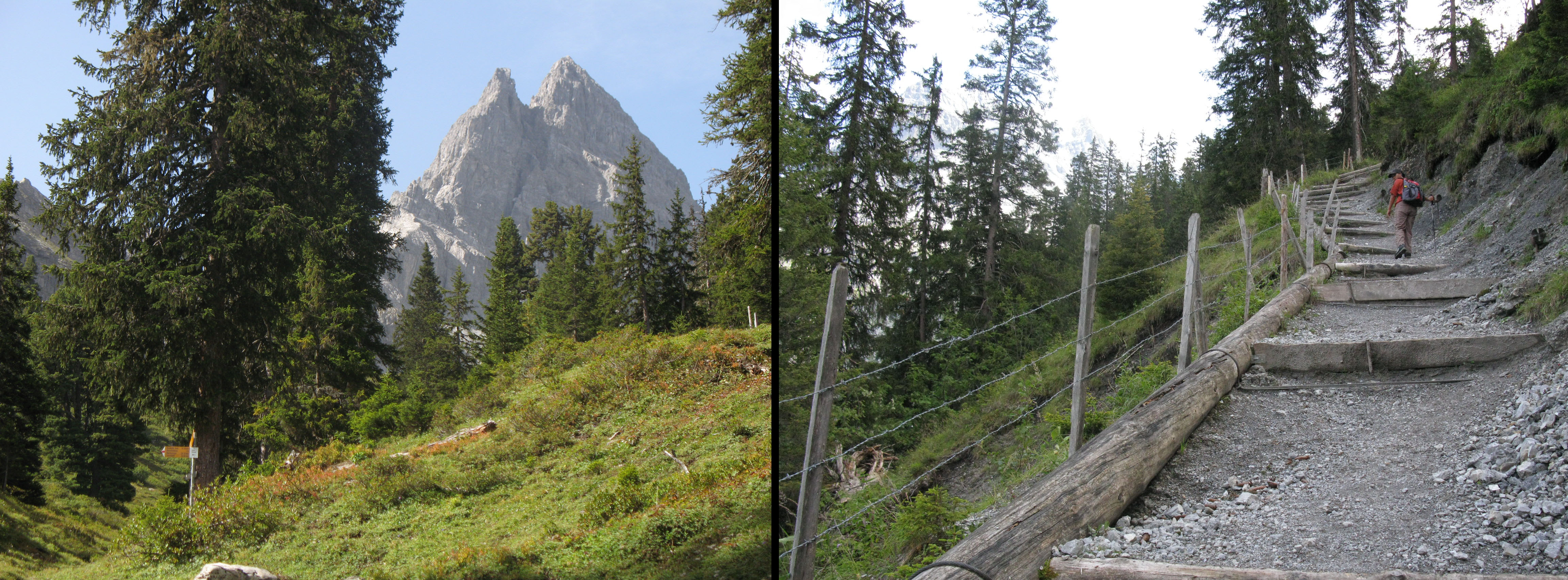 The ascent to the Busenalp Junction (Unter Busenalp) is unrelentingly steep and the 550 metres/1800 feet climb normally takes about 80 minutes.