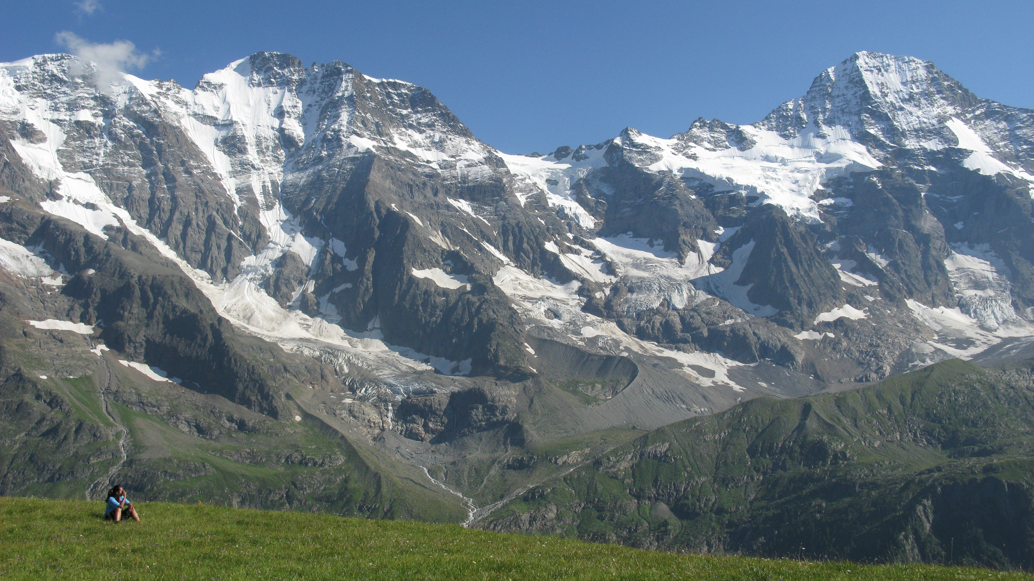 The Schilthorn with its famous revolving restaurant on its 10,000ft summit features prominently in this view from Busenalp across the Sefinental Valley
