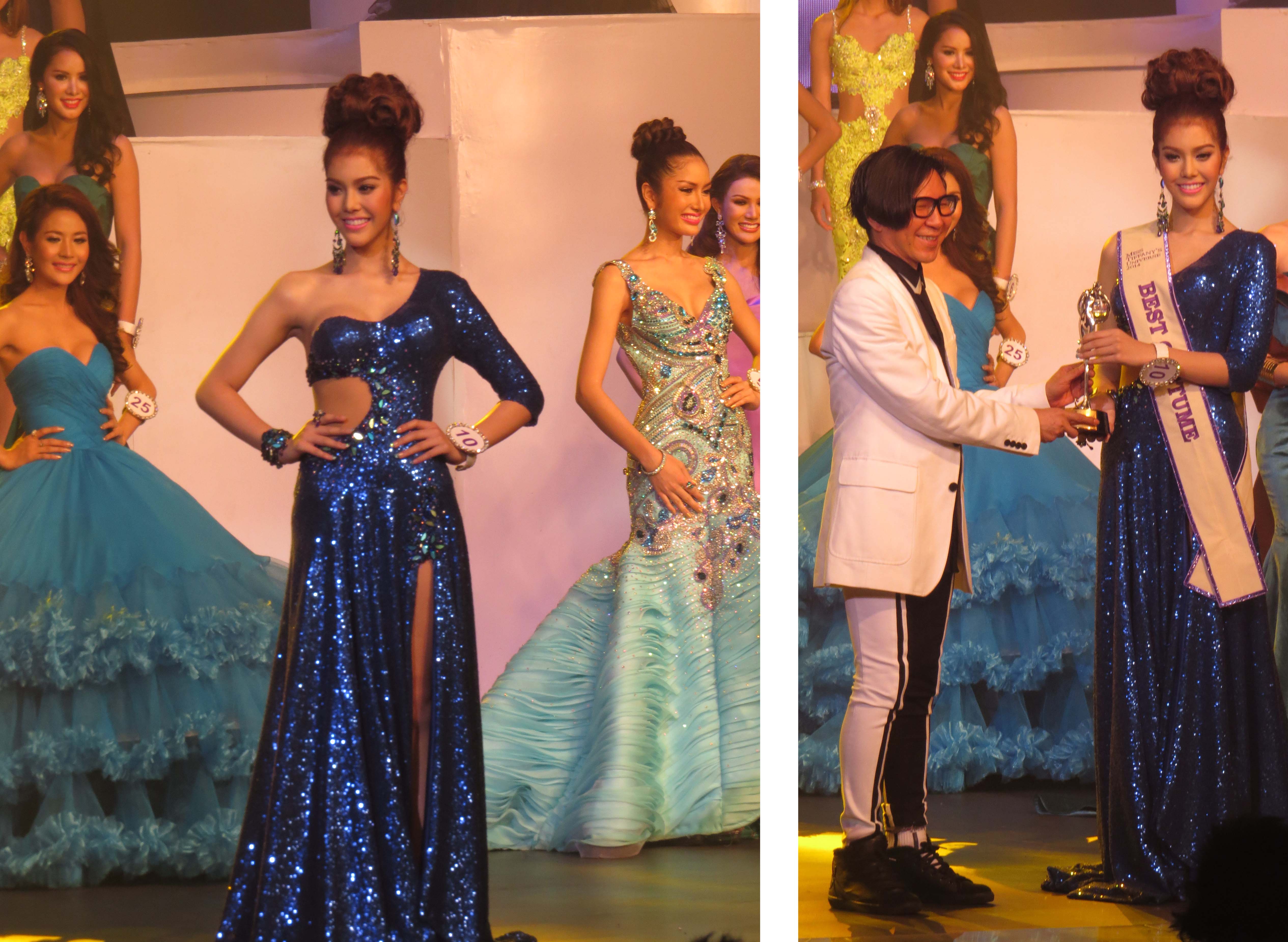 And then the final three lined up, hands on hips, mist or liquid ice on the stage floor and last year’s winner sitting on her throne and Miss International from Brazil waiting to the side to crown the winning contestant.