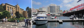 Left – The Museum of Contemporary Art Australia is housed in a magnificent Art Deco building facing Circular Quay. Right – Darling Harbour was transformed in the 1980s and is now a thriving centre with many hotels and Leisure attractions including the Sydney Casino.