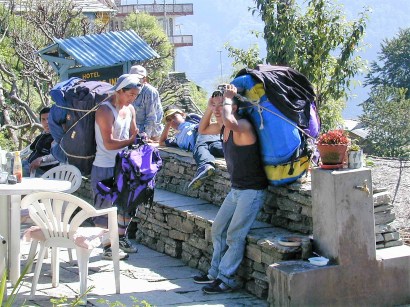 After several years of becoming familiar with routes and trails a porter may become an assistant guide for a larger group or be given the responsibility for guiding a couple of trekkers around one of the popular routes like the Annapurna Sanctuary or the trail to Everest Base Camp and then perhaps as an assistant Guide for a large group.
