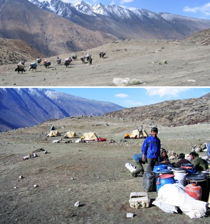 The campsite at Pethang Ringmo Tibet with Chomolonzo behind was the most spectacular setting I ever camped with Dendi. April 2006