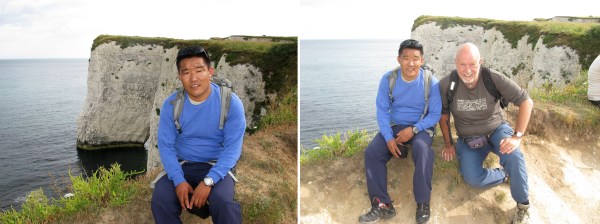 I met Dendi at London’s Heathrow Airport and the following day took him to explore the delights of Roman and Georgian Bath and he took great pleasure in pushing my 94 year old mother around the Roman Baths in her wheelchair! The following day I arranged for us to walk from the mouth of Poole Harbour along Shell Bay and Studland Bay to Old Harry Rocks and Swanage and we were joined by Doctor Matt who had been one of the party that Dendi had accompanied on the epic 2006 traverse from the Kharta Glacier over the Lhakpa La and on to Everest Advance Base Camp.