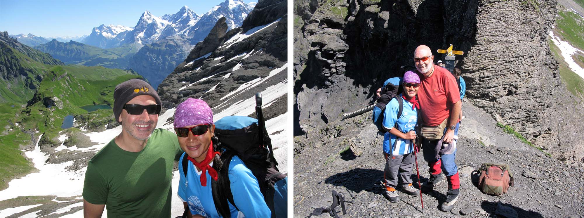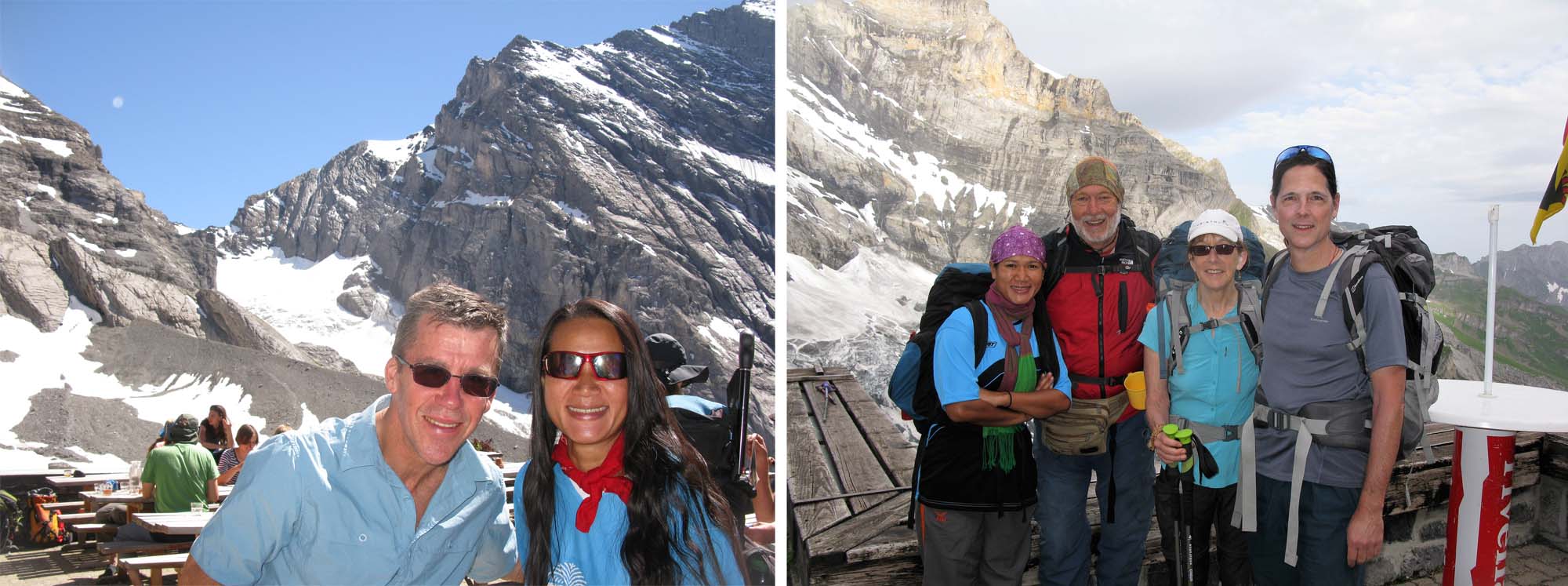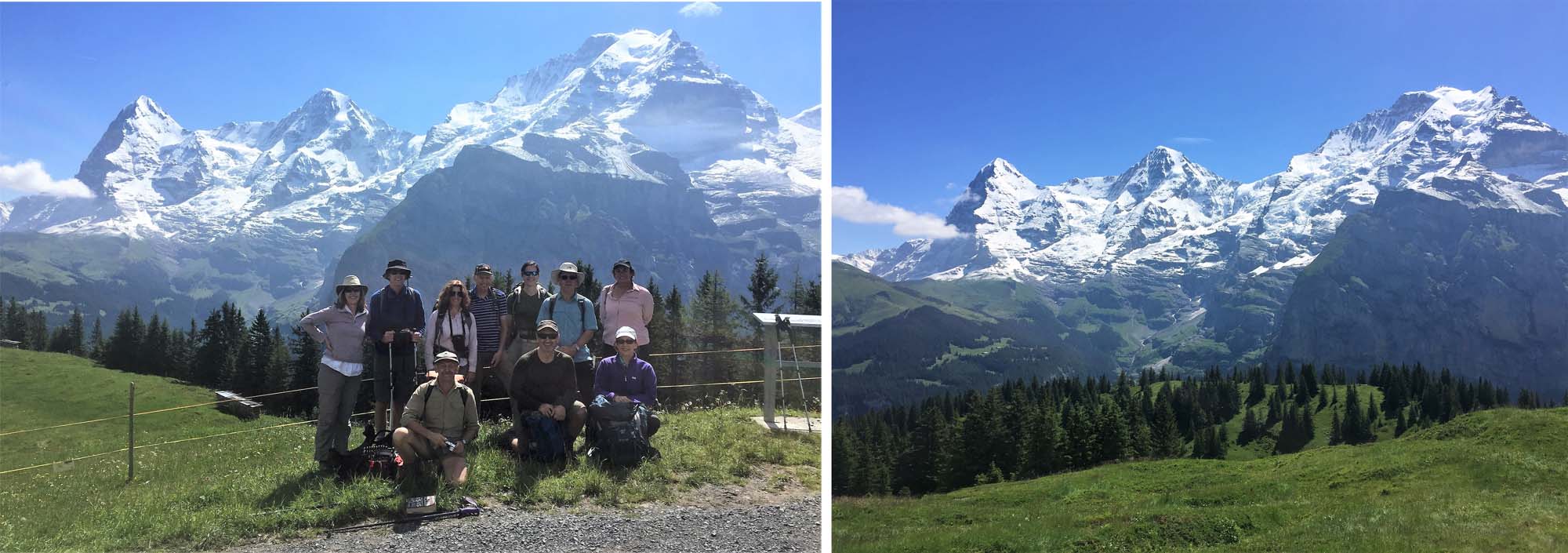 First of many group pictures and with the Eiger Monch and Jungfrau behind.