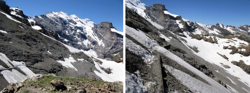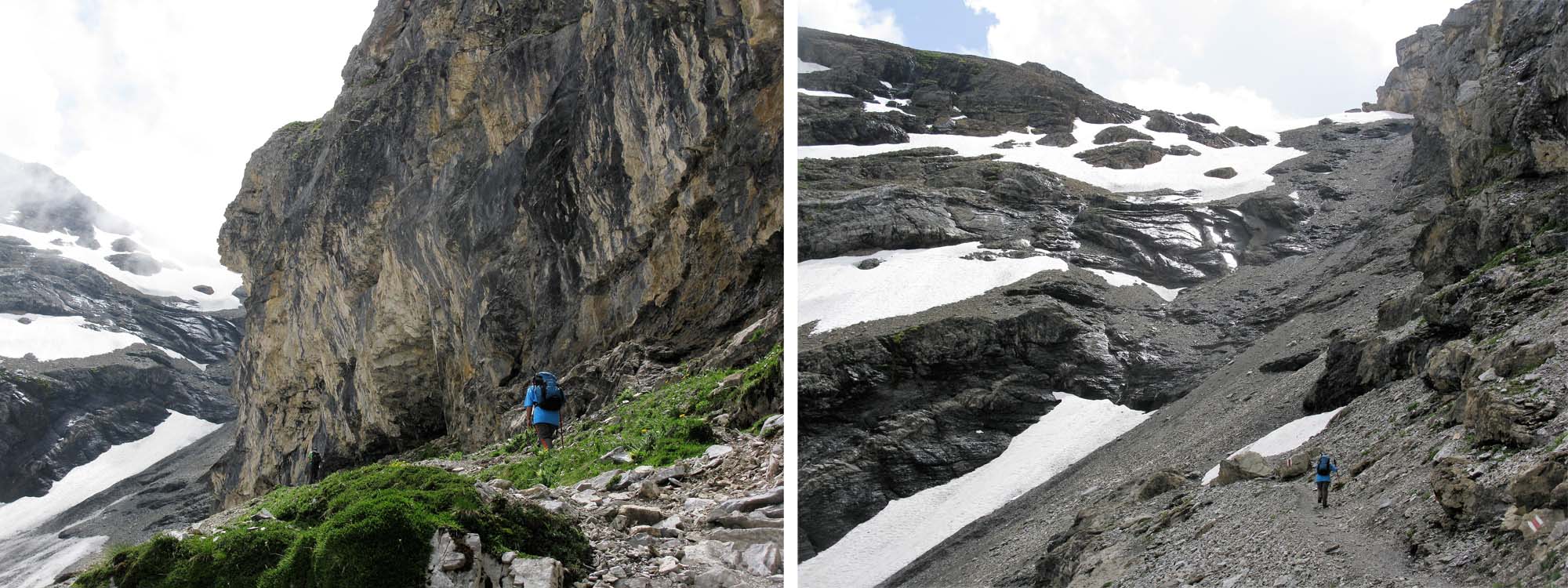 We had long since decided that rather than taking the direct route back to Kandesteg via the Gemmipass, a notch in the valley headwall towering above Leukerbad, we would follow the extended variant, taking two full days to get to Kandersteg rather than just half a day if we took the cable car up to the Gemmipass.