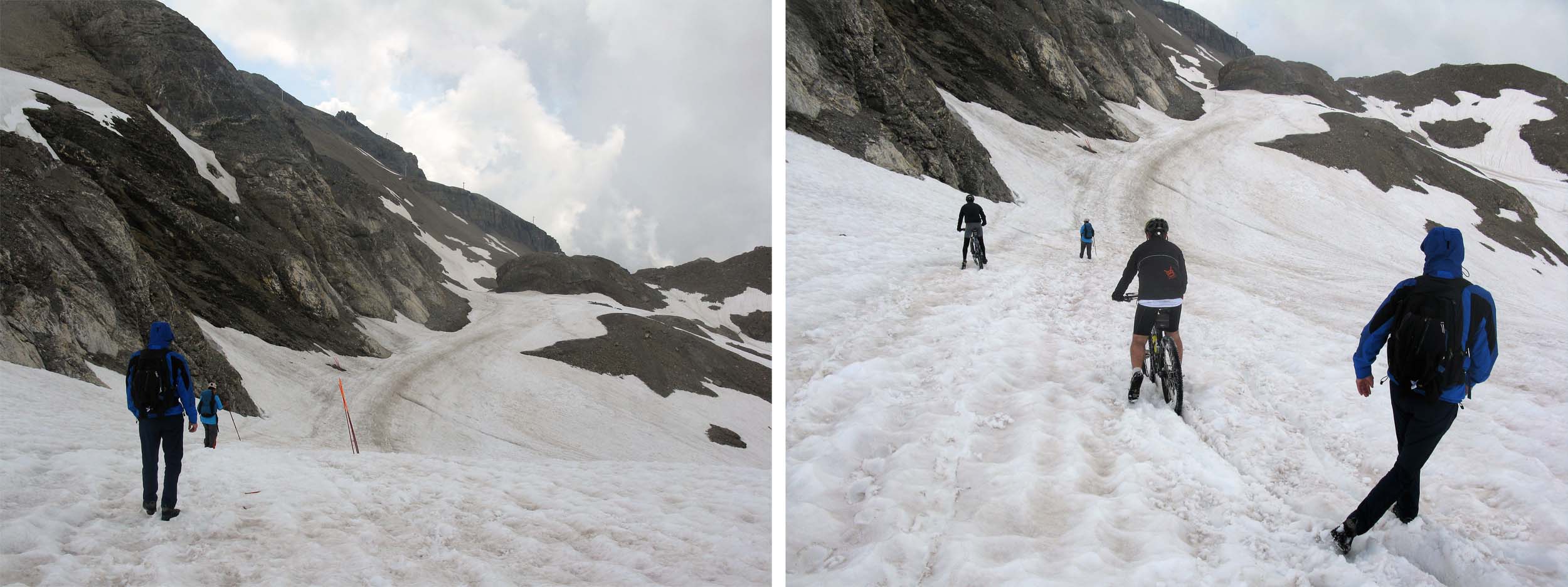The following day we climbed up through some partially covered snow slopes to the edge of the Glacier de la Plaine Morte (more a large ice field) which was also the terminus for the main cable car bringing skiers up from our destination Crans Montana.