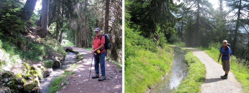The route from Crans Montana to Leukerbad initially follows a delightful Bisse, a man made water channel.