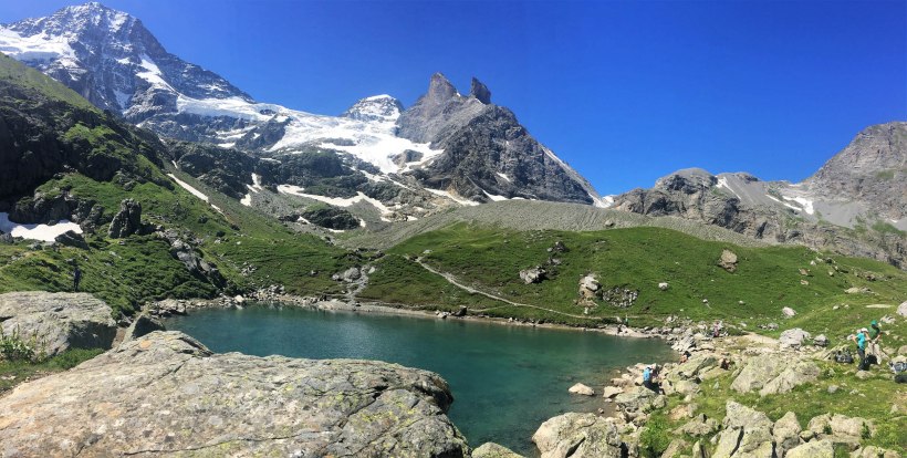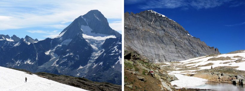 Oberhornsee is a magical spot with the Breithorn (left) and Tschingelhorn (right) behind.
