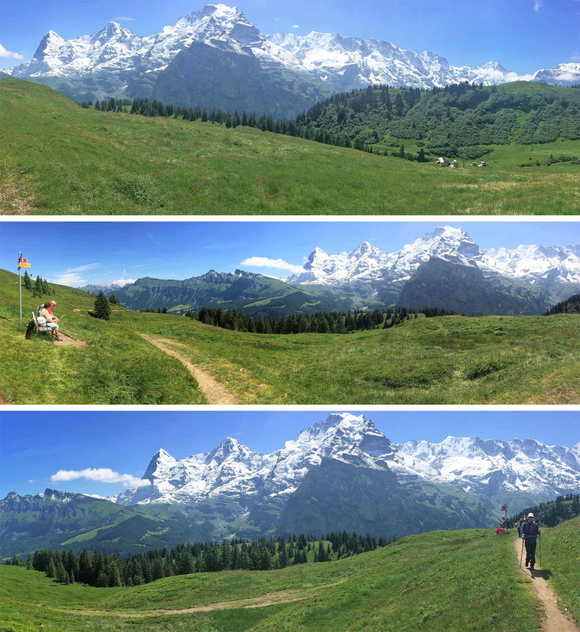 The magnificent Eiger, Monch and Jungfrau dominate the easy hike from Almendhubel to Marchegg.