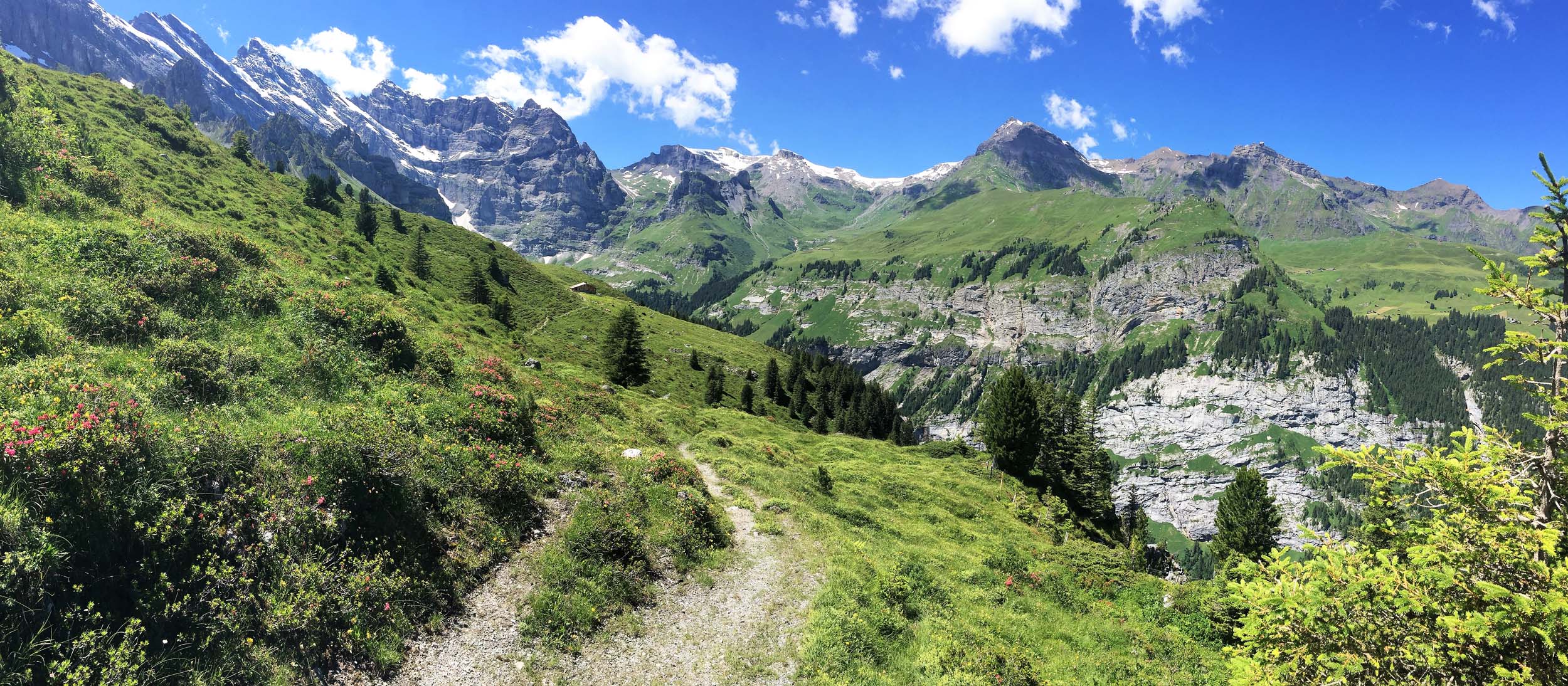 The trail from Obersteinberg into the UNESCO protected Upper Lauterbrunnen Valley