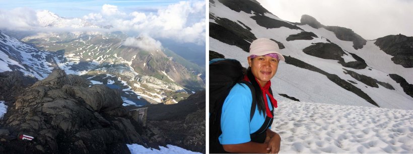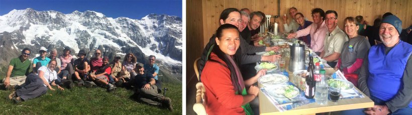 Four nationalities – Thai, British, Canadian and Australian- at the Gspaltenhorn Hut