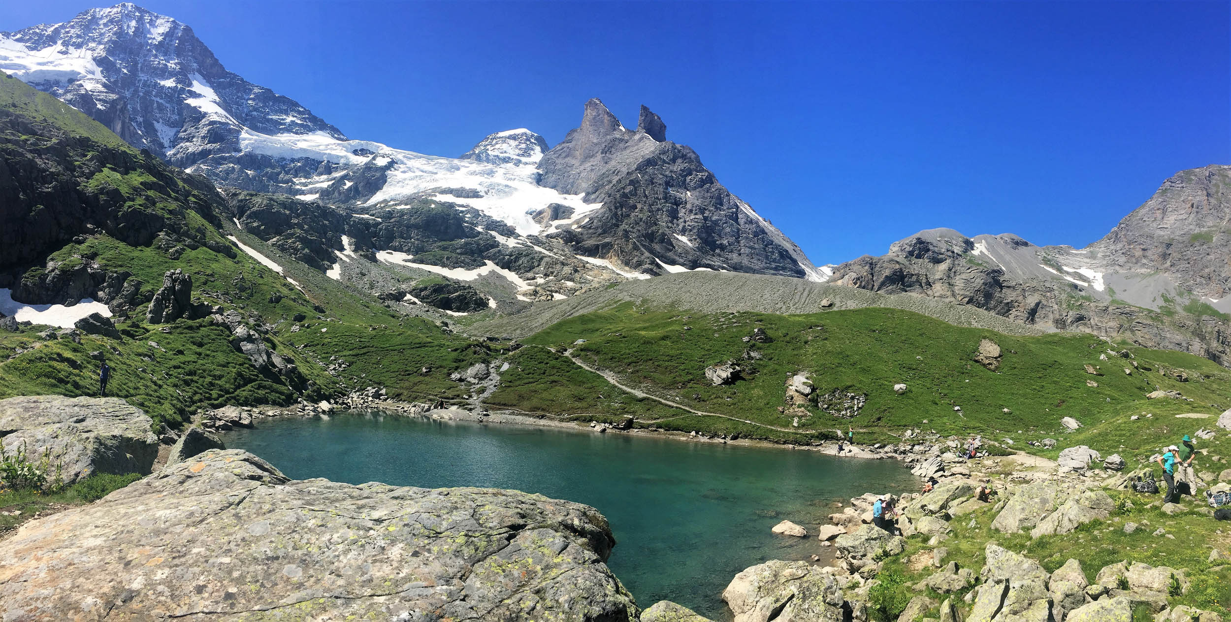 The trail to and from the Restipass passes the Wysse See where many hikers choose to rest and chill out when approaching Leukerbad and risk missing the last cable car. (As I know from personal experience!)