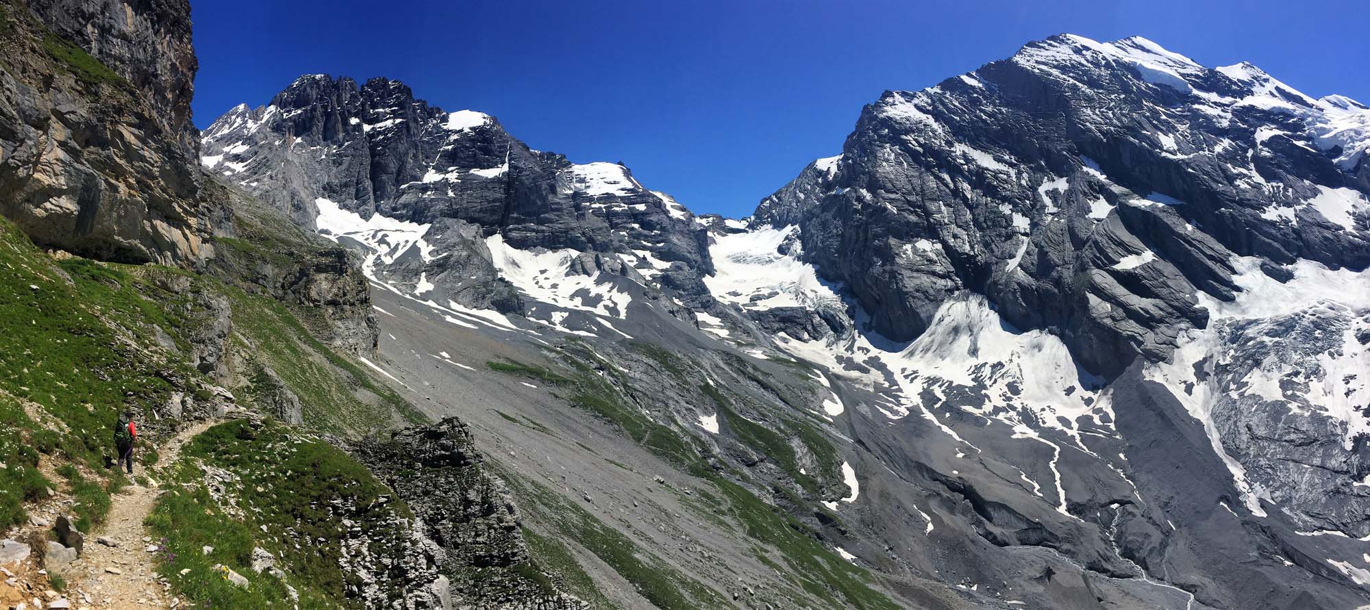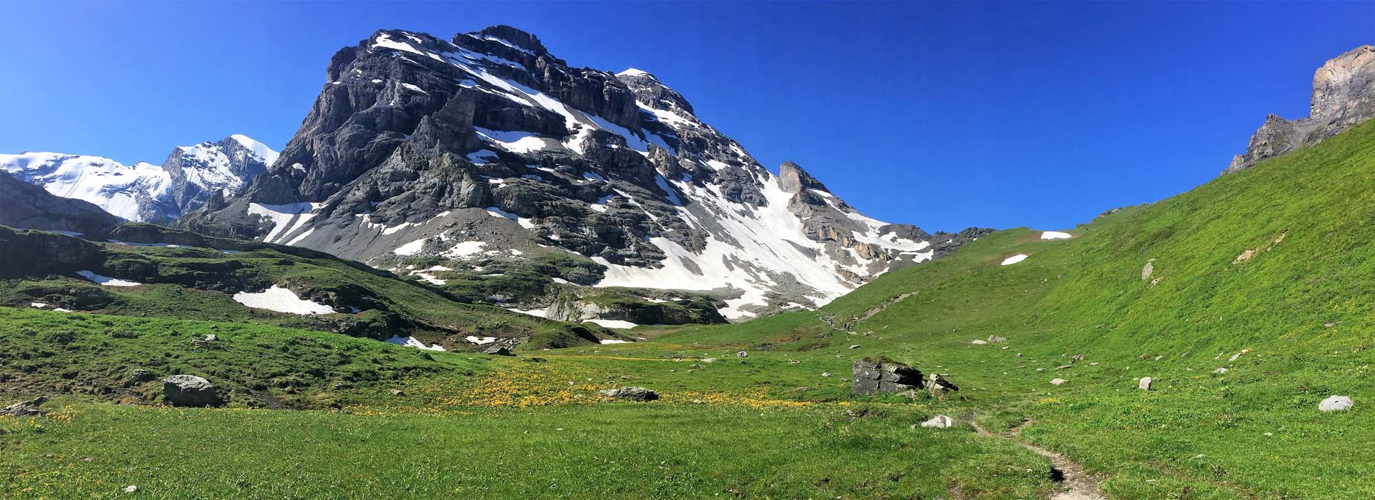 Descending towards Kandesteg with the Blumisalp group on the left