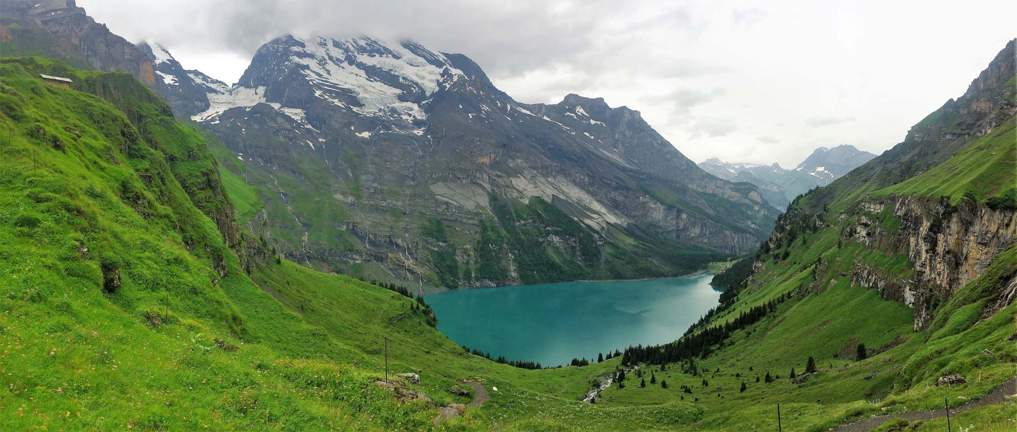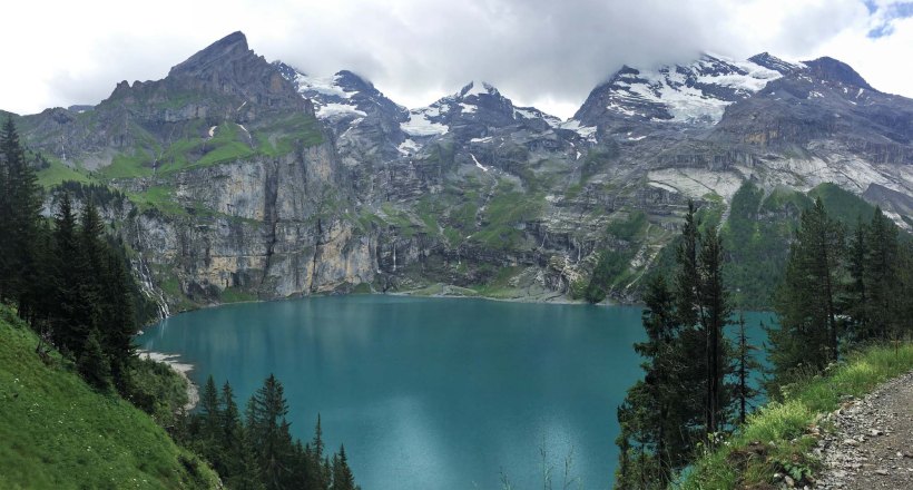 The pretty Oeschinensee is considered one of the jewels of the Alps – even when it is overcast.