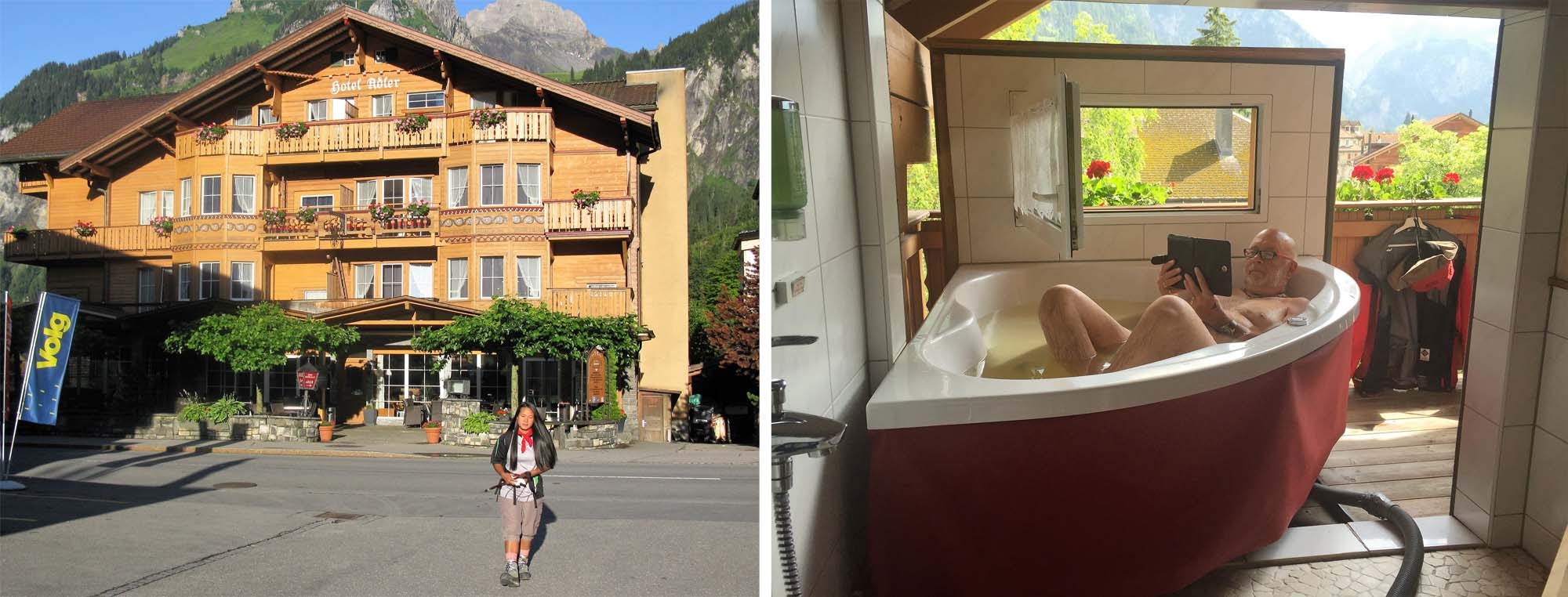 In Kandersteg most of our group stayed at the International Scouting Centre as they were all boys at heart (!) but yours truly opted for some added comforts at the Hotel Adler where what I thought was the whirlpool switch actually repositioned the bath on the balcony! Not a pretty sight!
