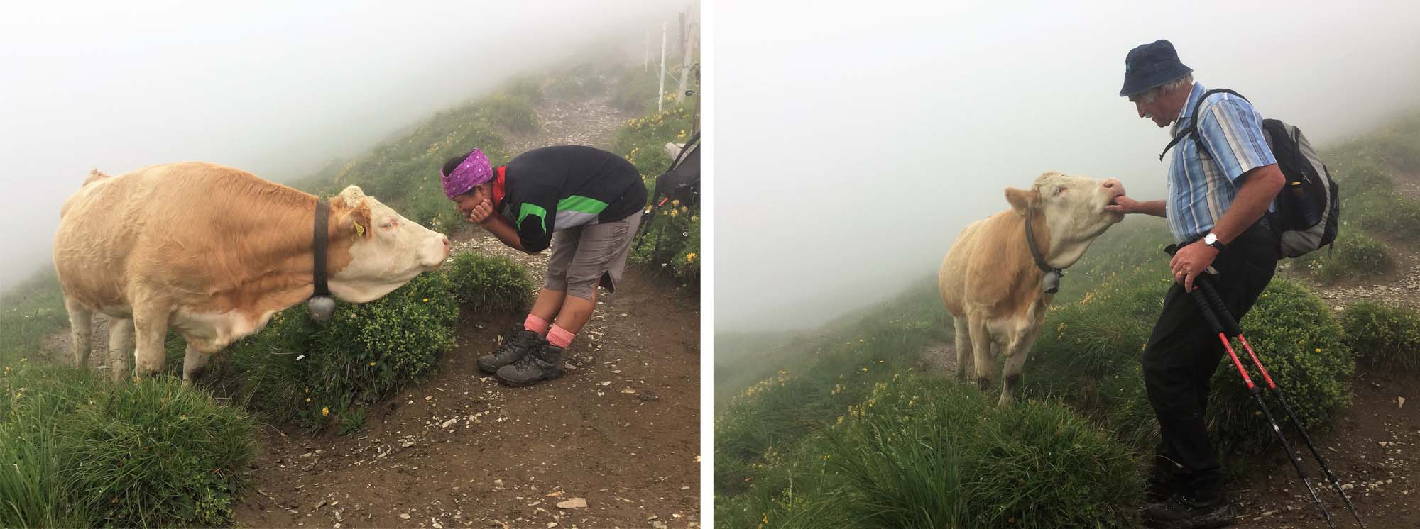 From Kandersteg onwards we were finally on the Wildstrubel Circuit although for the first two Days our trail was shared by the Alpine Pass Route. And we saved ourselves a 550 metre climb by taking the Cable Car out of Kandesteg up to Allmenalp. This was in theory and practice the easiest section of our route but notwithstanding this, the approach to the Bunderchrinde was covered by heavy cloud and some of our group, by design, crossed a neighbouring pass before descending to Adelboden, a thriving year round resort which is also associated with the Girl Guides movement