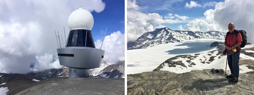A rather surreal structure and the Chairman of the Trek with the Wildstrubel behind.