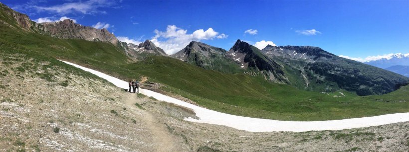 Glorious weather and magnificent scenery as we climbed up from Kummenalp to the Lotschenpass.