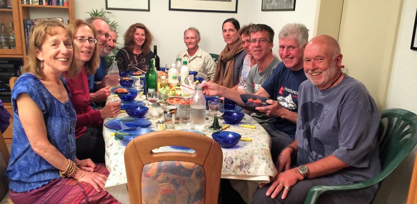Kandersteg to Murren involved 4 trains and a cable car and perhaps three hours in total and the reason I had gone back to Murren to get my car on our ‘Rest Day’ at Kandersteg was so I could now rush back to Murren and prepare a farewell dinner for everyone, together with the last group photo as a record that we all (just) survived the journey intact.