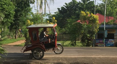 And when it came to the final day much as we had enjoyed relaxing and chilling out at the resort, which after all was the name of the exercise we knew we really should see some of the island so we rented a small motor bike taxi with Jojie sitting on the pillion behind the driver and Jen and I squeezed into the sidecar!