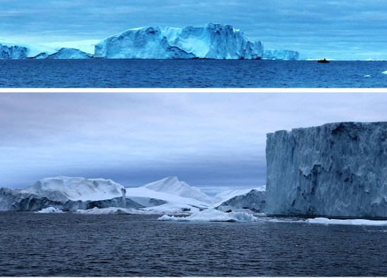 An early morning Zodiac cruise enabled us to view the giant icebergs emerging from the Ilulissat Ice Fjord.