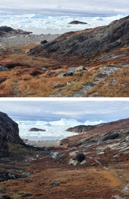 Heading inland and looking back at the Ilulissat Ice Fjord.
