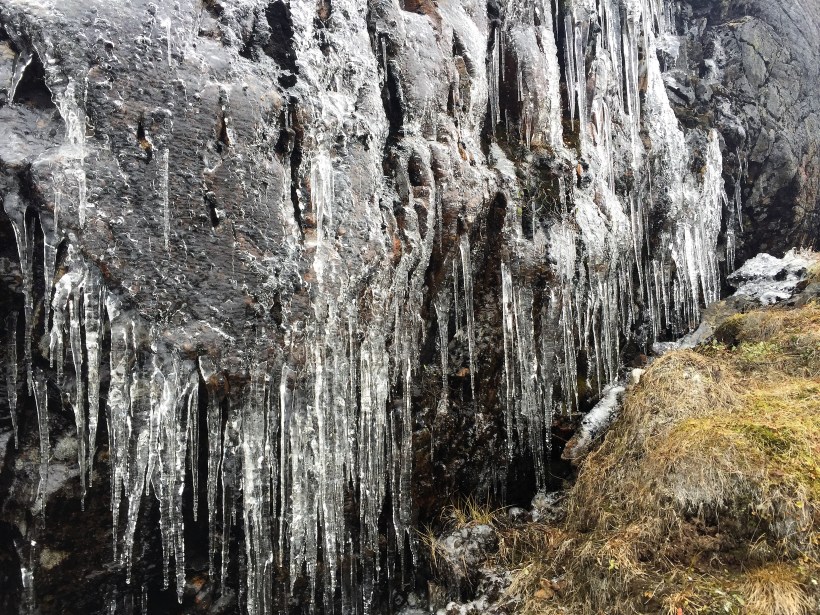 And little did I know that one of the most impressive features of the day still lay ahead as the path suddenly dropped and then took a sharp left and headed up a narrow ravine with a small frozen waterfall attached to the ravine wall on my right and then another.