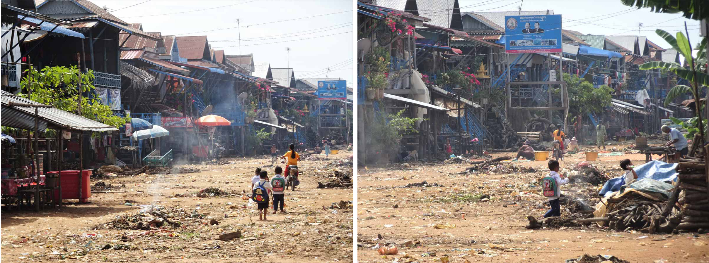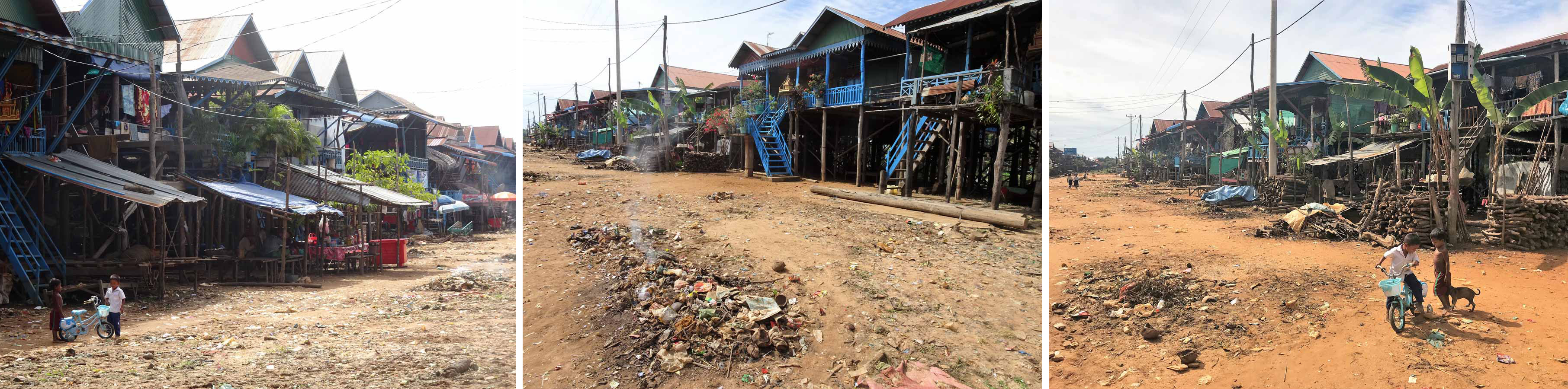 When the water level falls the main street which is under water for much of the year is left with rubbish and trash!