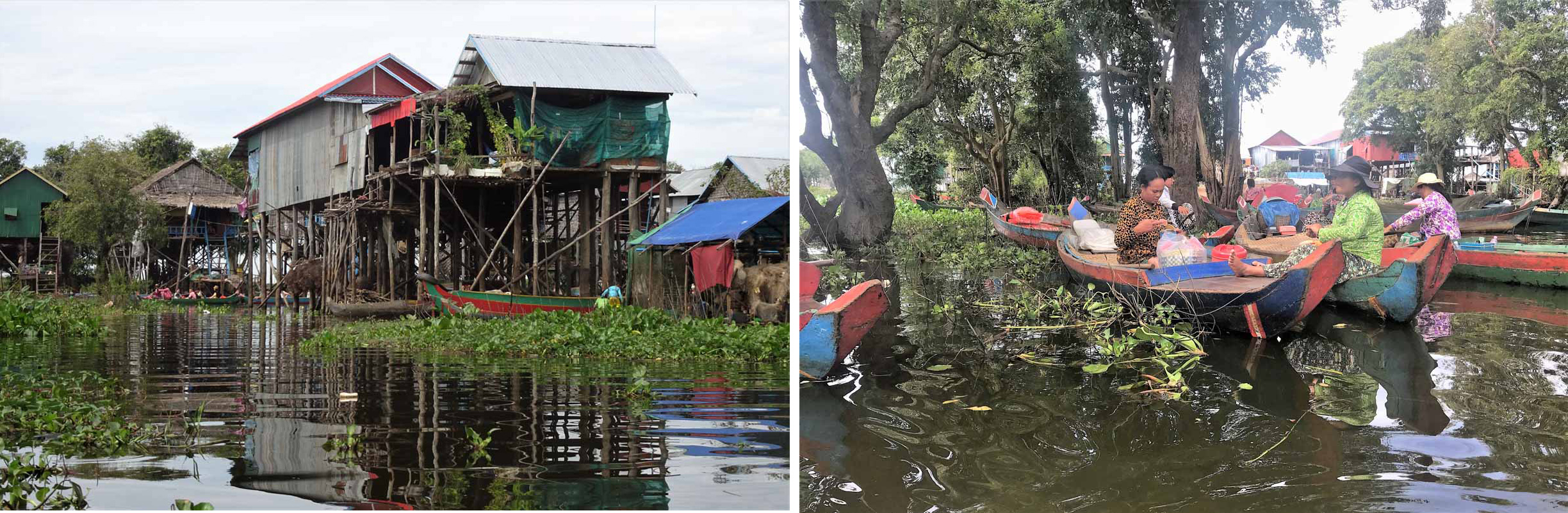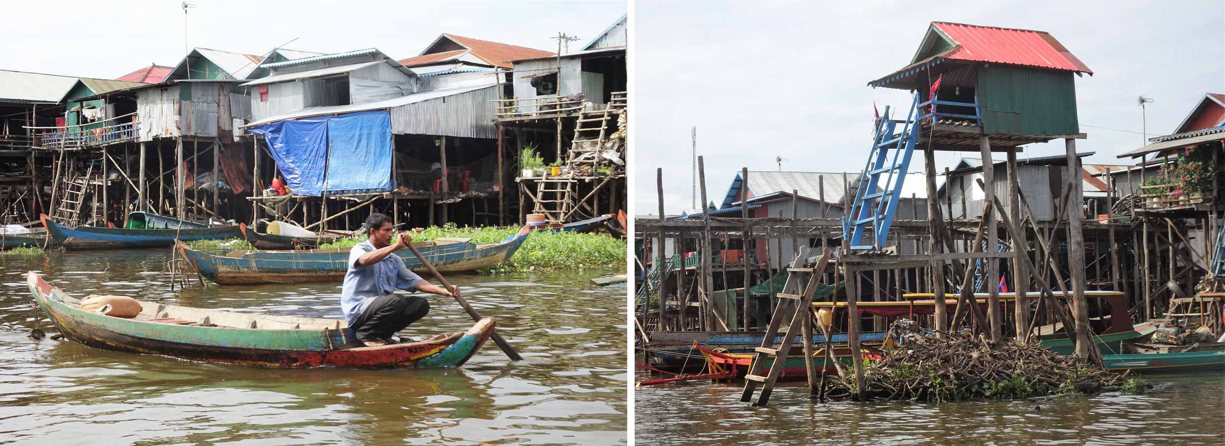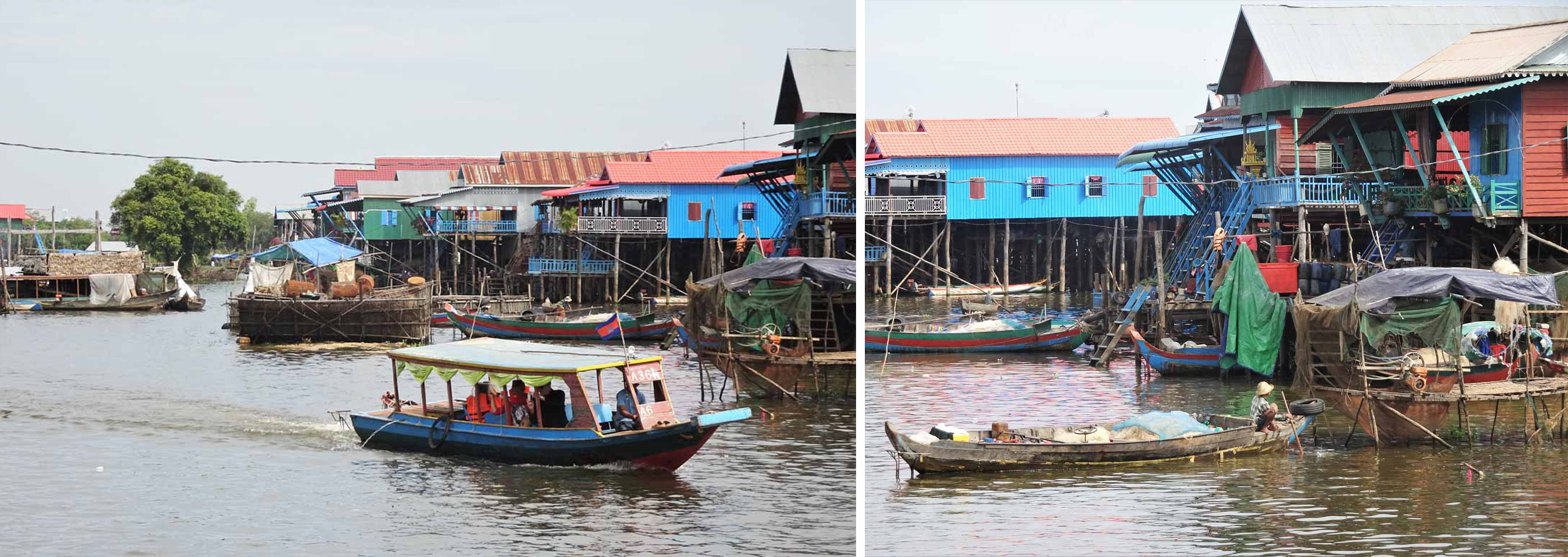 So when you go to Siem Reap to visit the temples as you must, remember also to allow yourself half a day for a visit to Tonle Sap and discover how the human occupation around Tonle Sap is very distinctive and characterized by floating villages, towering stilted houses, huge fish traps and an economy deeply intertwined with the lake, the fish, the wildlife and the cycles of rising and falling waters!