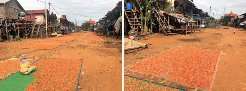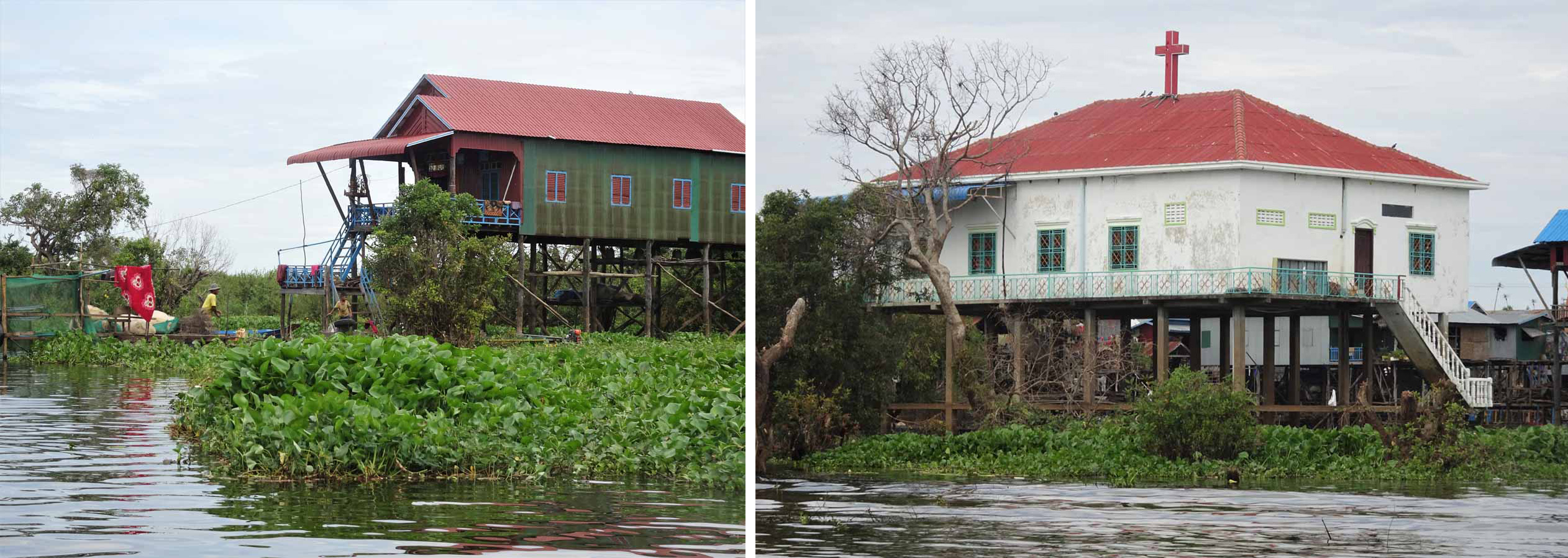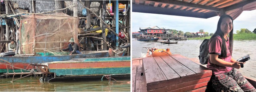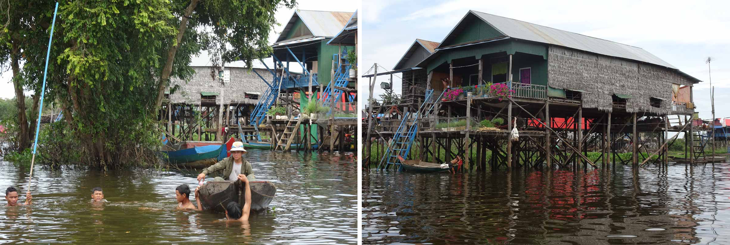 So when you go to Siem Reap to visit the temples as you must, remember also to allow yourself half a day for a visit to Tonle Sap and discover how the human occupation around Tonle Sap is very distinctive and characterized by floating villages, towering stilted houses, huge fish traps and an economy deeply intertwined with the lake, the fish, the wildlife and the cycles of rising and falling waters!