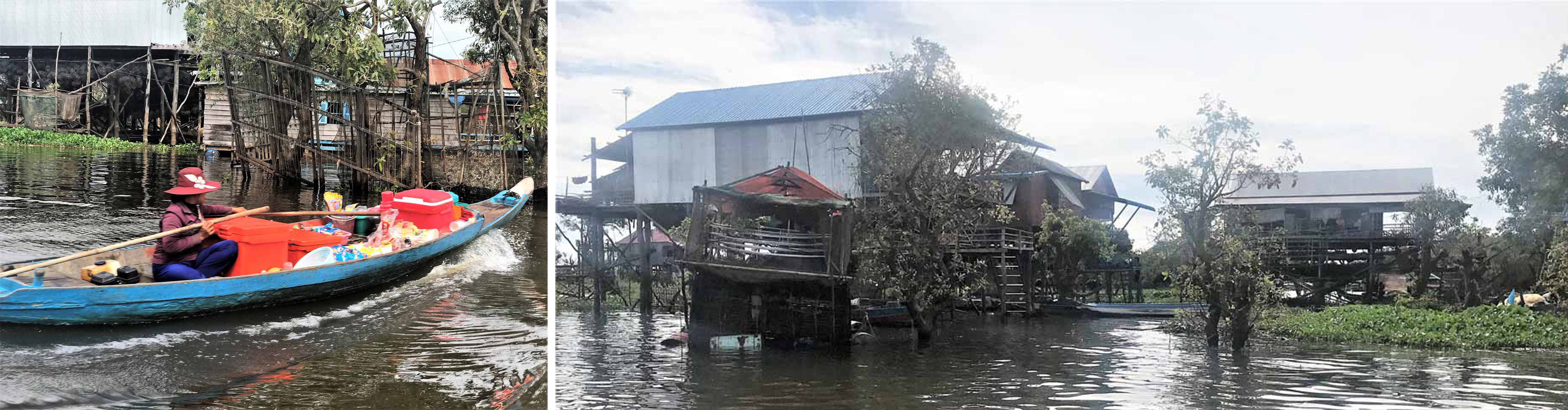 Tonle Sap is one of the worlds richest inland fishing grounds and is surrounded by freshwater mangroves described locally as ‘flooded forests’ and the largest settlements on, or in close proximity to the lake are Cambodia’s third and fifth largest settlements of Battambang and Siem Reap. There are over 300 species of fish in the lake which provides for more than half the fish consumed in Cambodia and over 100 varieties of water birds live on or around the lake.