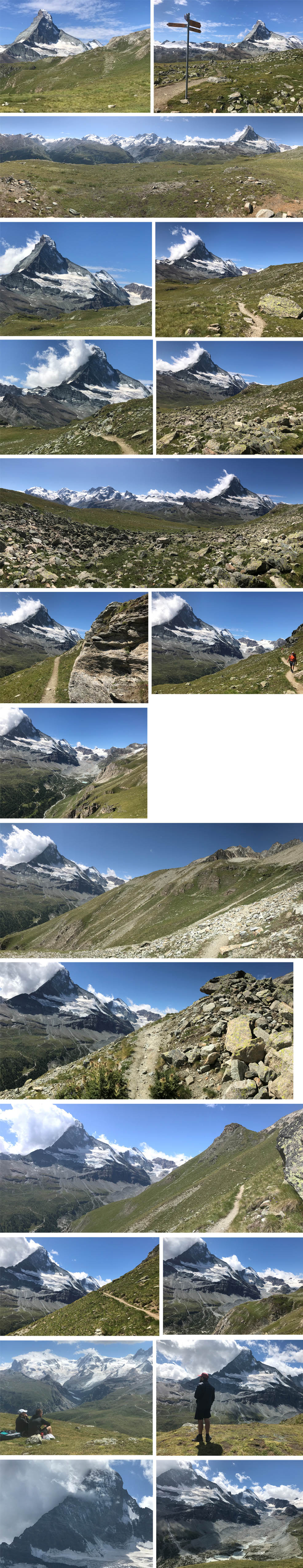 The Höhbalmen and the Matterhorn (4478m): August 14 2019 – the trail contours around providing never- ending views of the Matterhorn and is one of the great Balcony routes in the Alps.