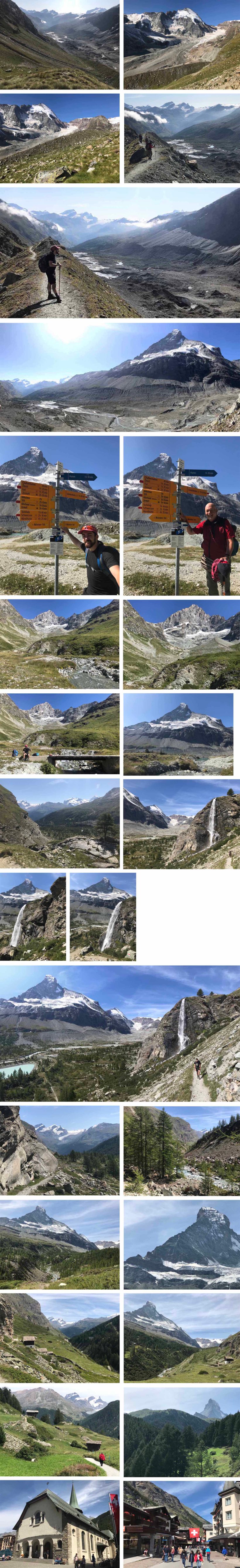 On our final day, as we made the long walk back to Zermatt via Zmut, above us we could see the Matterhorn’s entire Hornli Ridge in all its glory with the Hornli Hut at its base clearly visible. I had hiked to the Hornli Hut with my Filipino friends Ted and Tess and Thai friend Ampai in 2016 on my last visit to Zermatt.