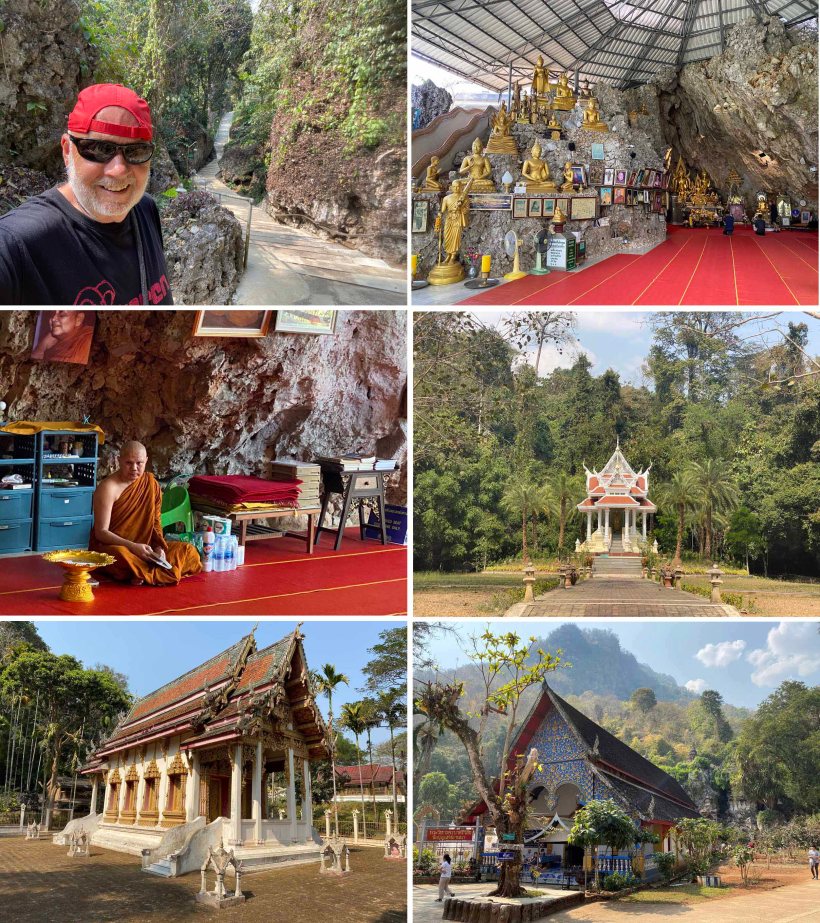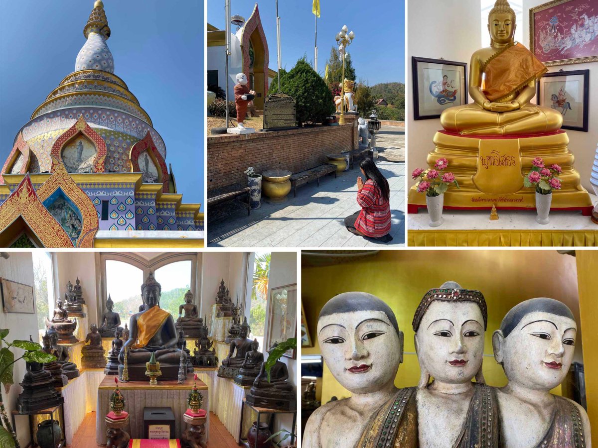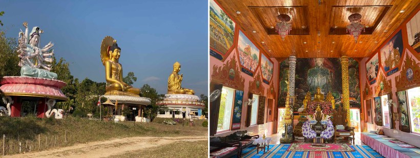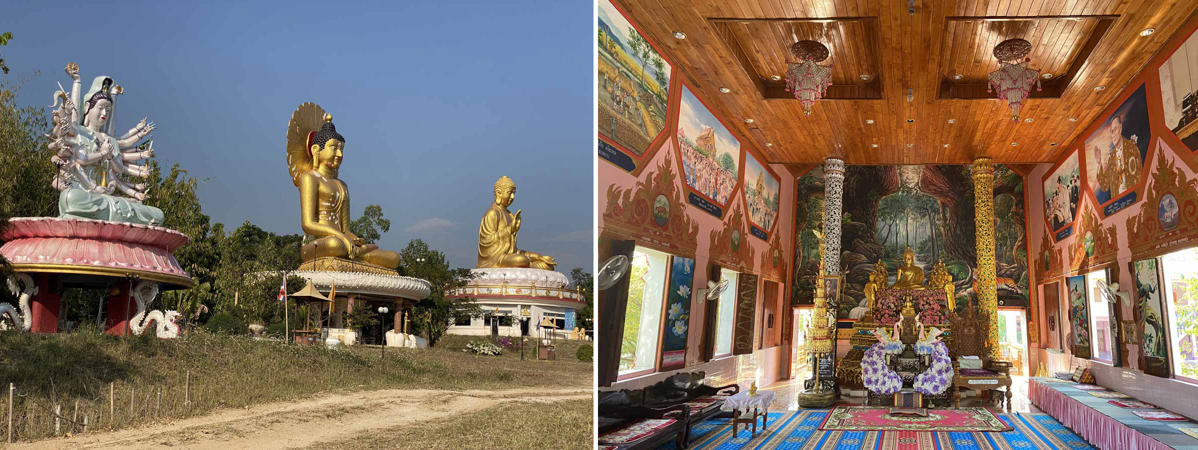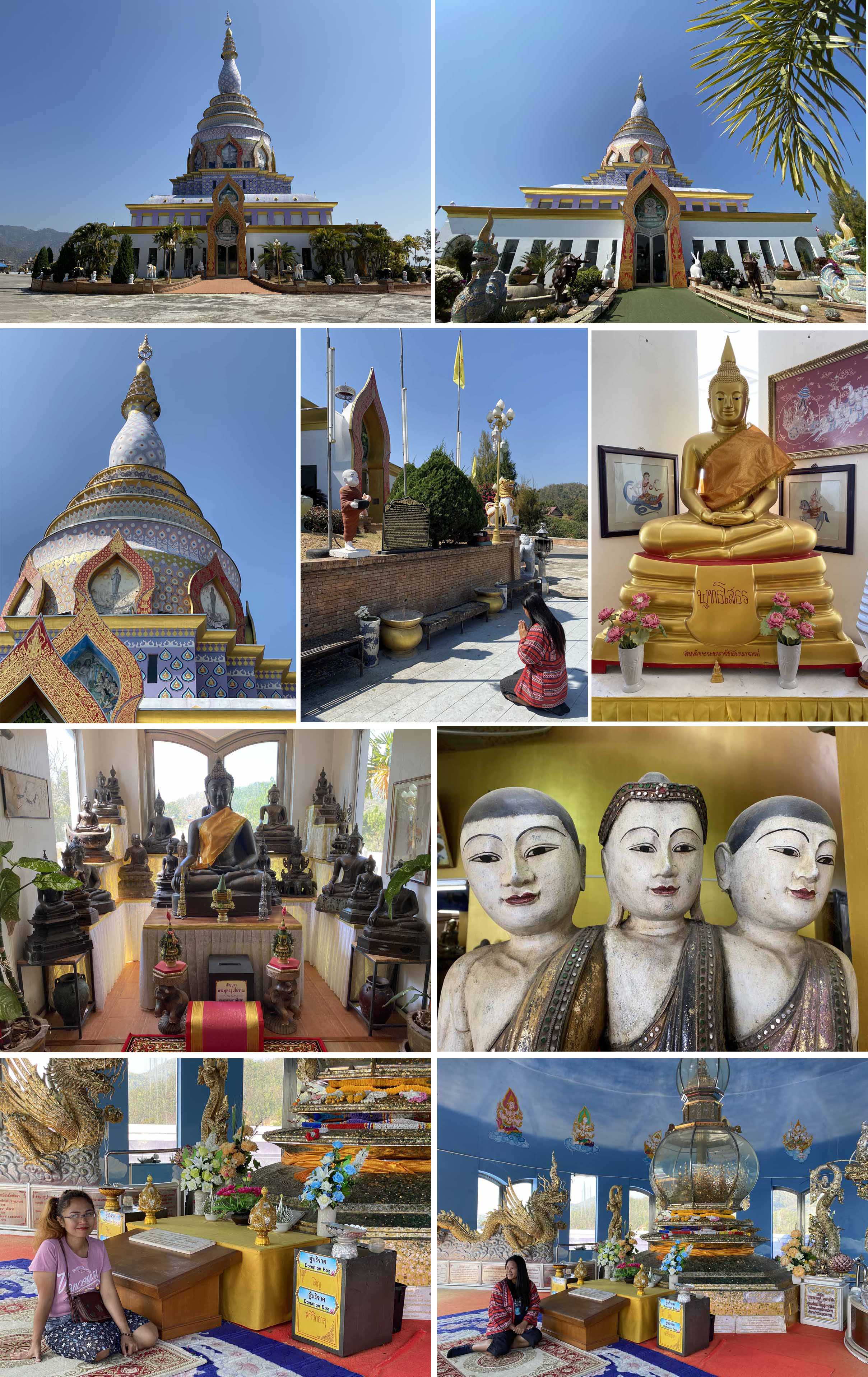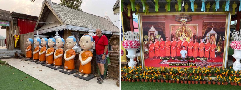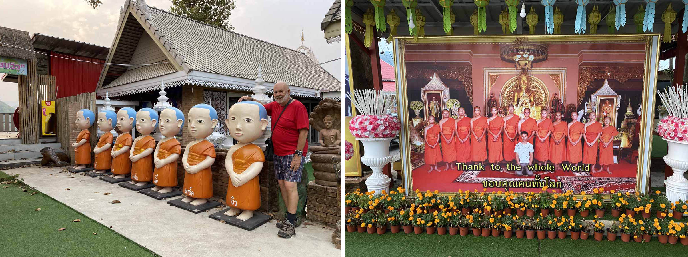Small statues and a photo display in the temple celebrated the successful rescue of the junior boys soccer team from the nearby Tham Luang cave system in 2018. The one boy not wearing saffron robes was a Christian from Myanmar.