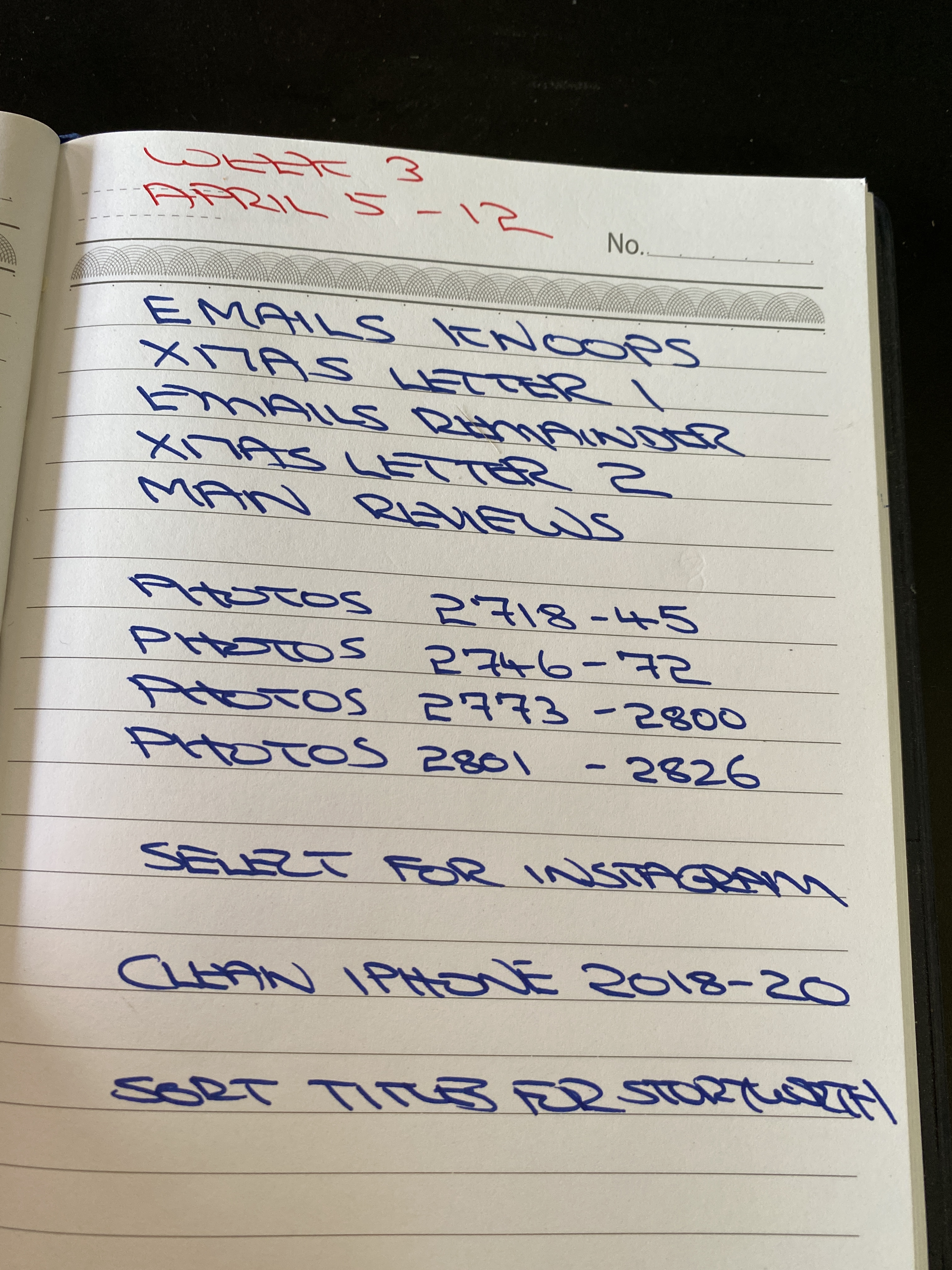 To ensure lockdown was as productive as possible every Monday I made a list of tasks to complete each week. Some weeks were more successful than others!