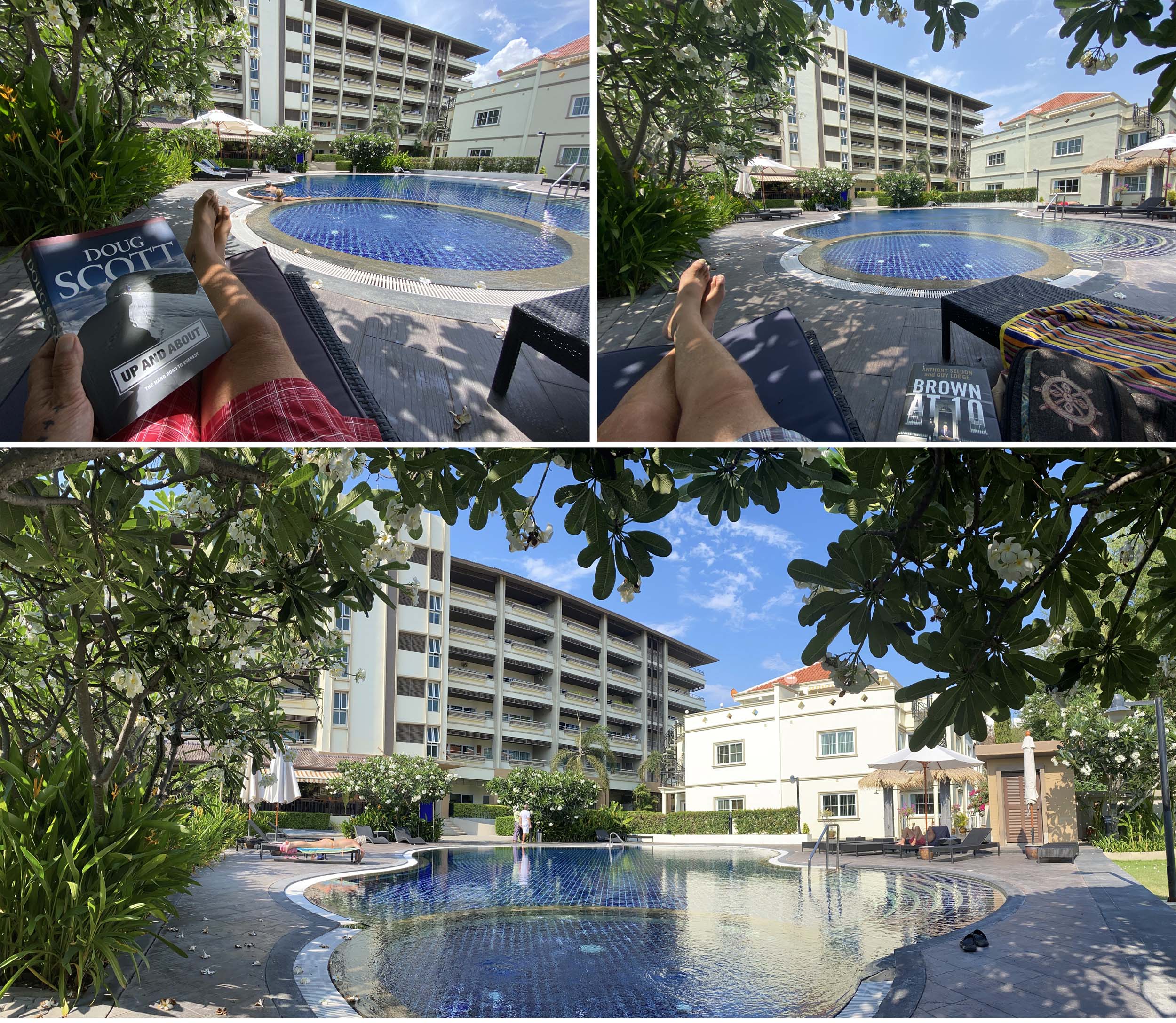 – Sitting around the usually deserted swimming pool (which 95% of the time I had to myself) and reading.