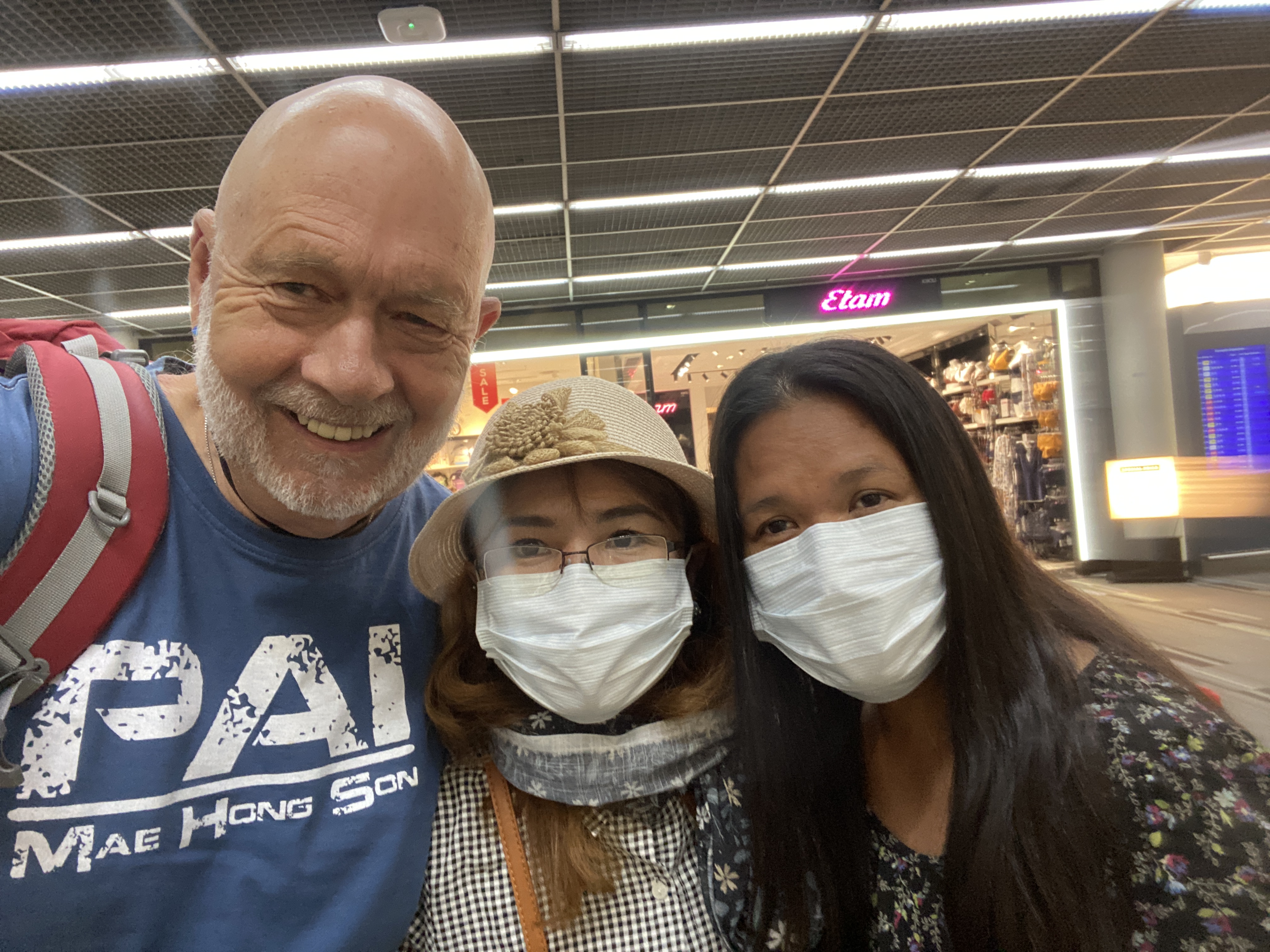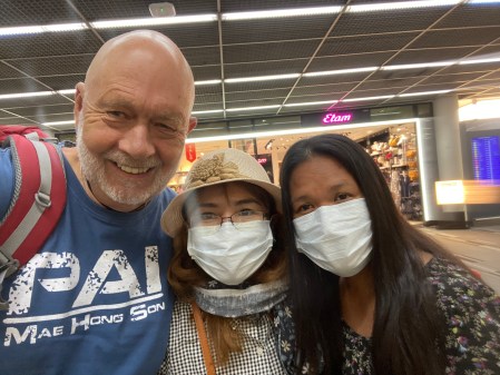 Ampai, Suwanna and myself on February 2 before departing for the Golden Triangle area of northern Thailand. The Thais were already proactively wearing masks!