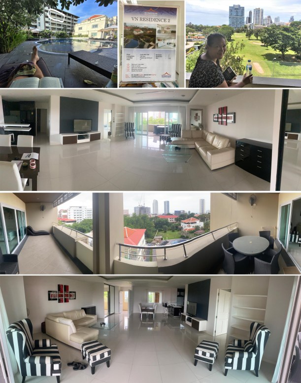 As the complex is located adjacent to a pitch and putt golf course and only a few hundred metres from the summer home of the current king’s first wife, it is very quiet and Pattaya’s most beautiful beach is less than a kilometer away, which is an 8 minute walk or 90 seconds on my motor bike. Because of the proximity to the former royal wife’s occasionally used summer home, security is high throughout the year, with a permanently manned police post at the end of our road, no high rise developments are allowed that can overlook the royal property (love and respect for the Royal family is inculcated into the psyche of every Thai from an early age) and there are no noisy or raucous bars in the area. However  Pratumnak Sois (Street) 4 and 5 are just 200 meters to the north and south respectively, replete with 24 hour convenience stores and restaurants to suit every ethnic taste.