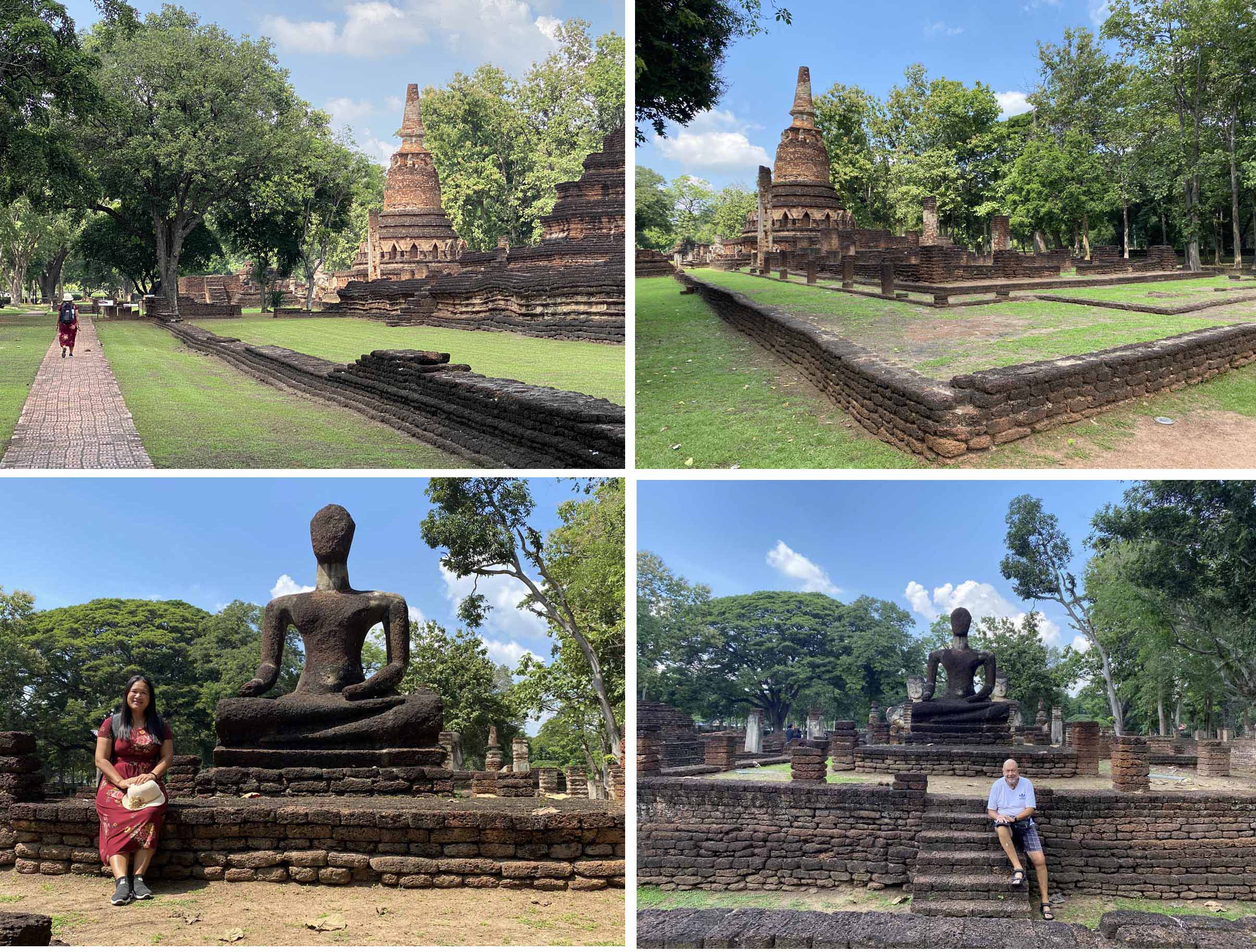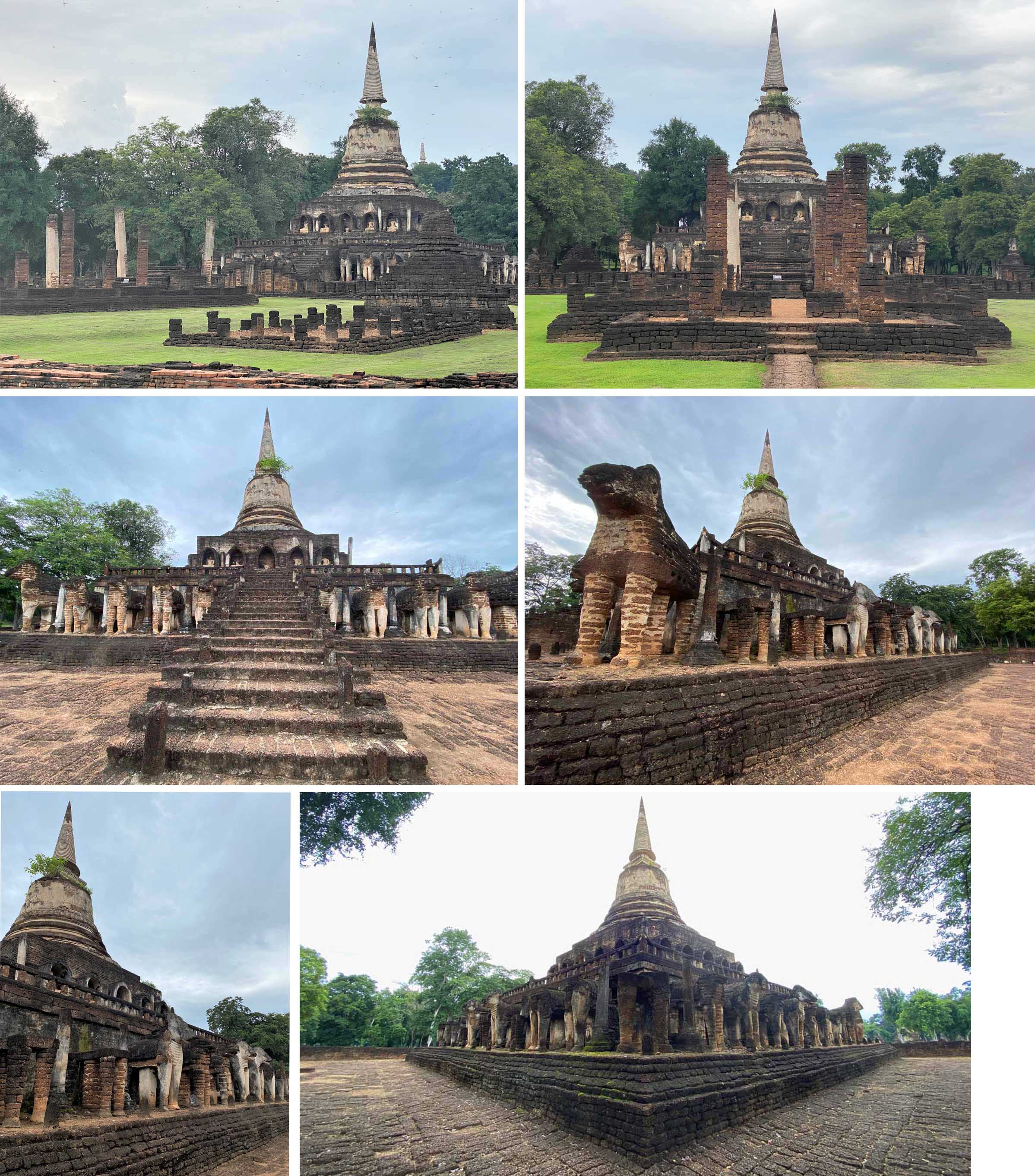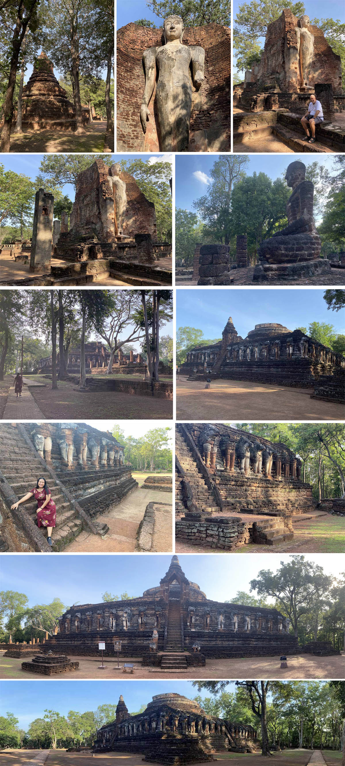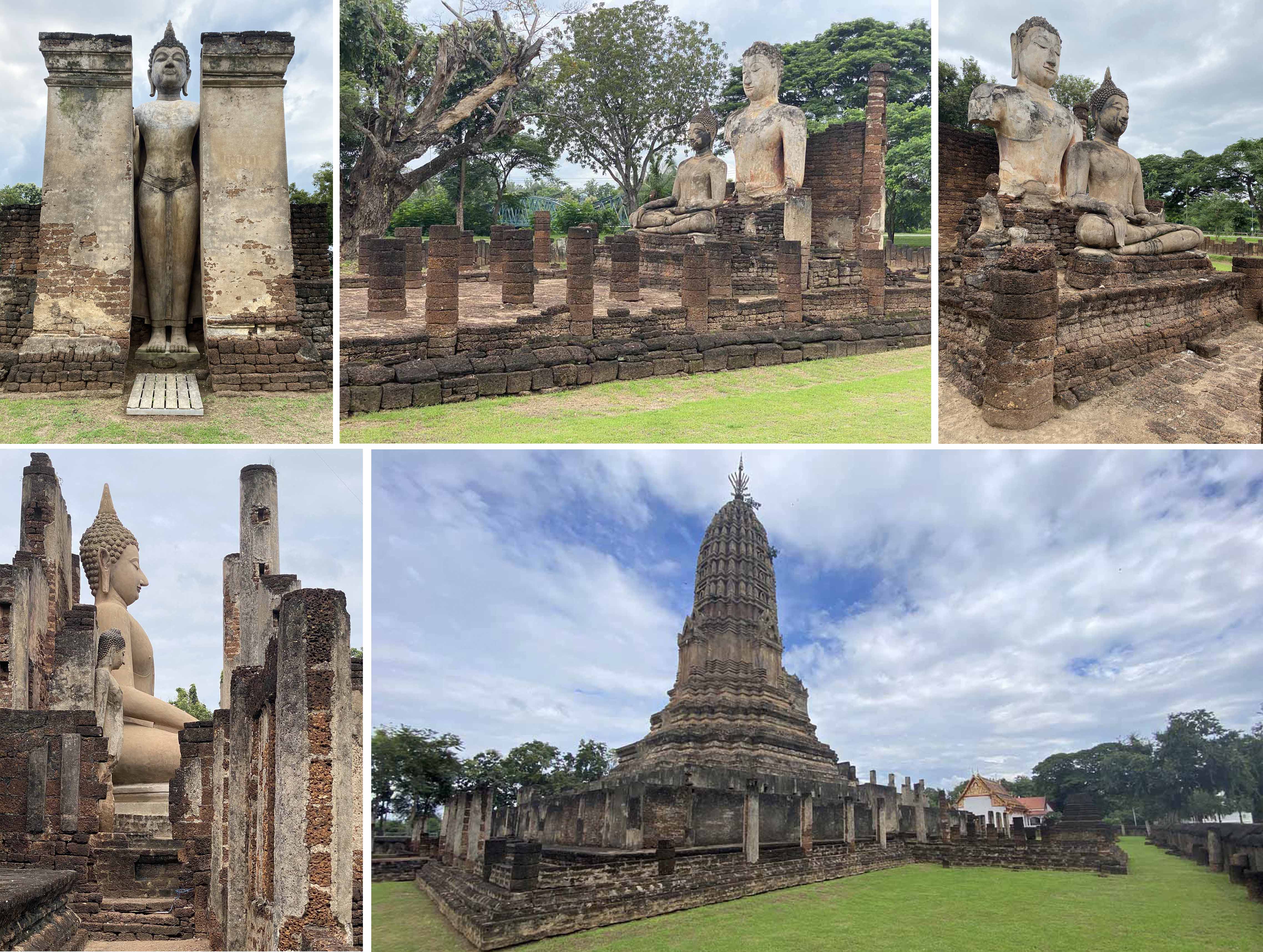 There are over 40 restored Temple compounds ranging from little more than outline foundations to an extensive complex in the forested northern zone about a mile from the centre. These include a giant standing Buddha at Wat Phra Si Iriyabot and the elephant buttressed Wat Chang (Elephant) Rawp.