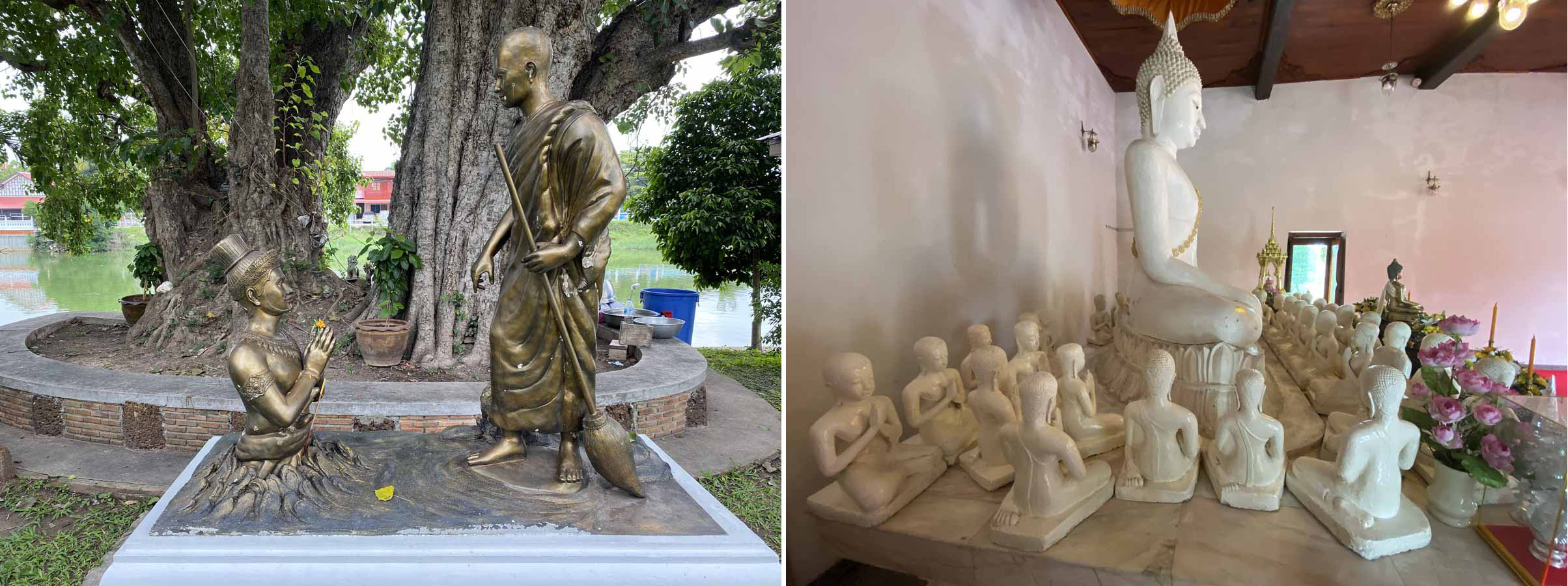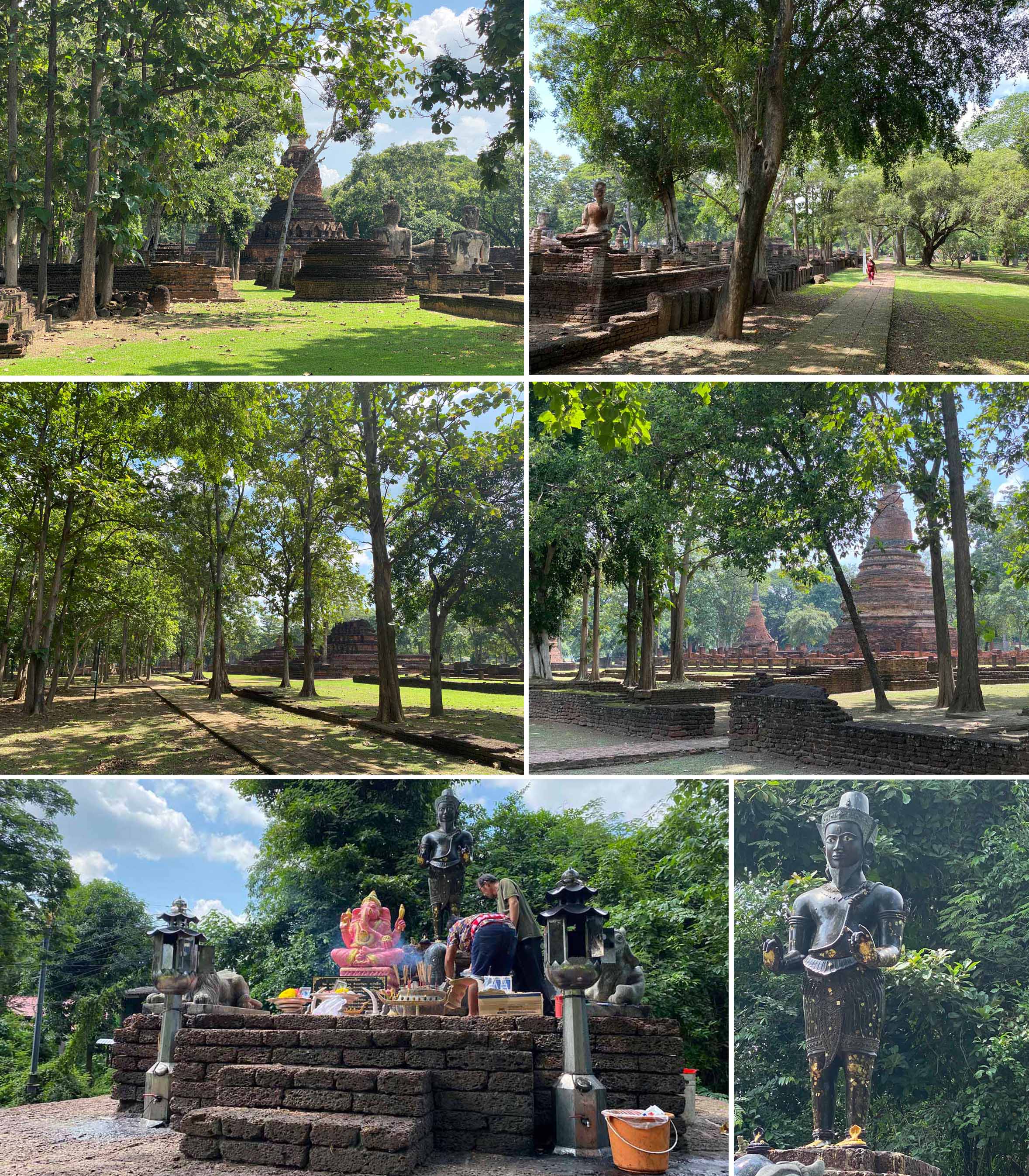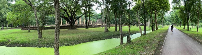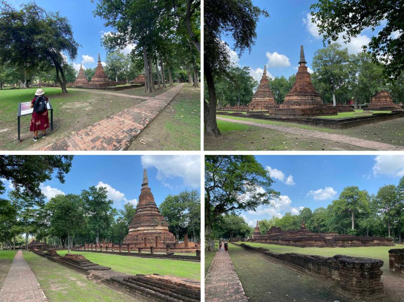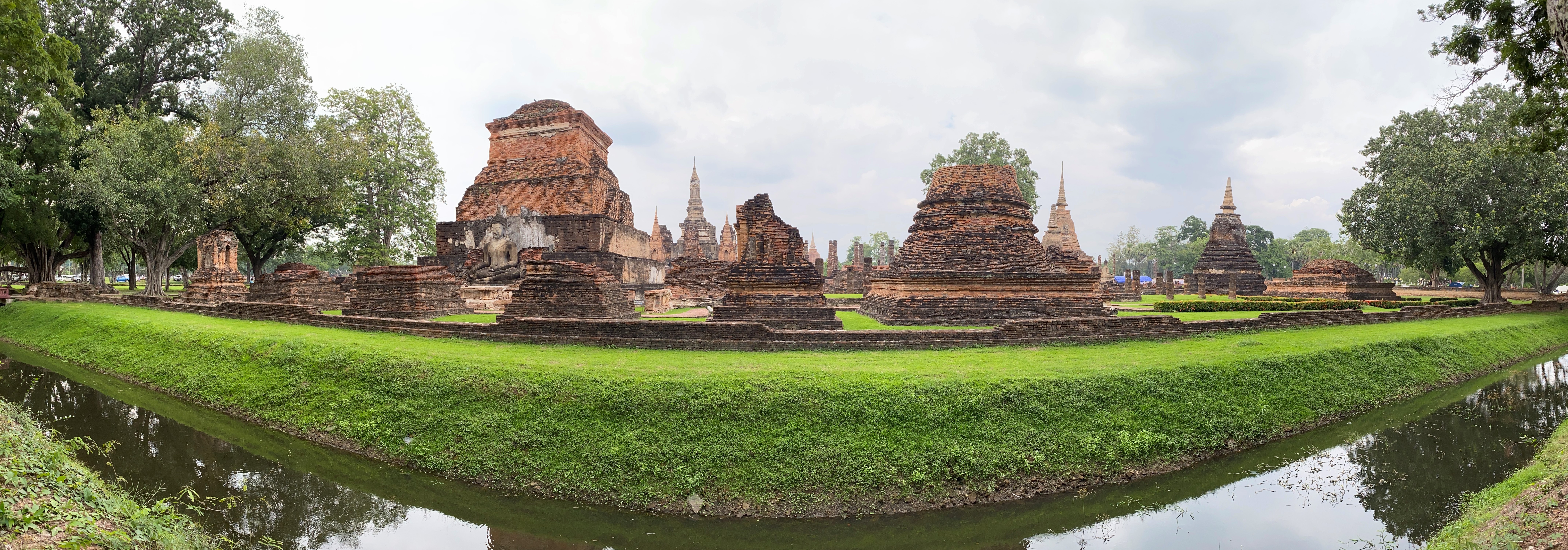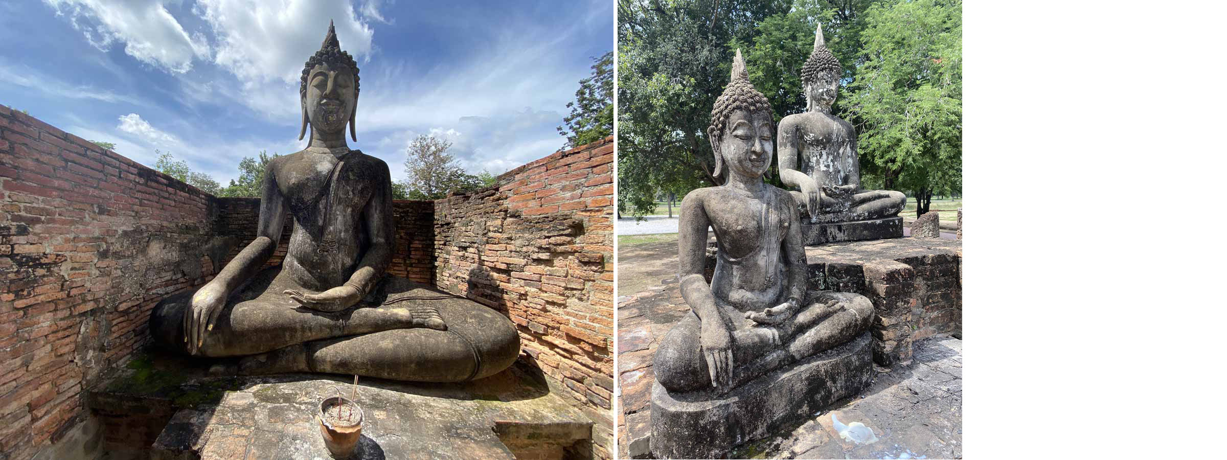 There are over 40 restored Temple compounds ranging from little more than outline foundations to an extensive complex in the forested northern zone about a mile from the centre. These include a giant standing Buddha at Wat Phra Si Iriyabot and the elephant buttressed Wat Chang (Elephant) Rawp.
