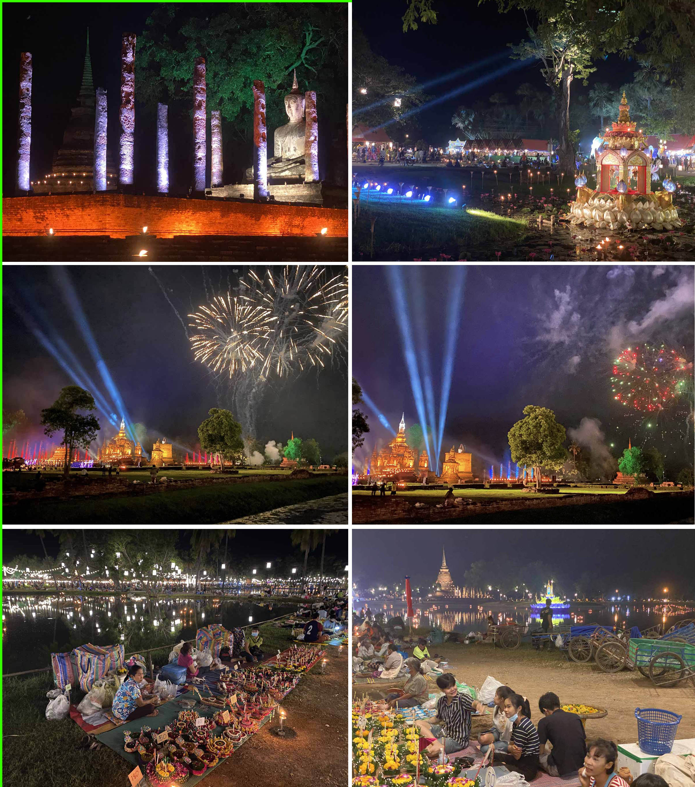 Wat Sa Si is located on an island in the historical park’s largest pond and is a focal point for the Loy Krathong celebrations which took place at the time of our visit.