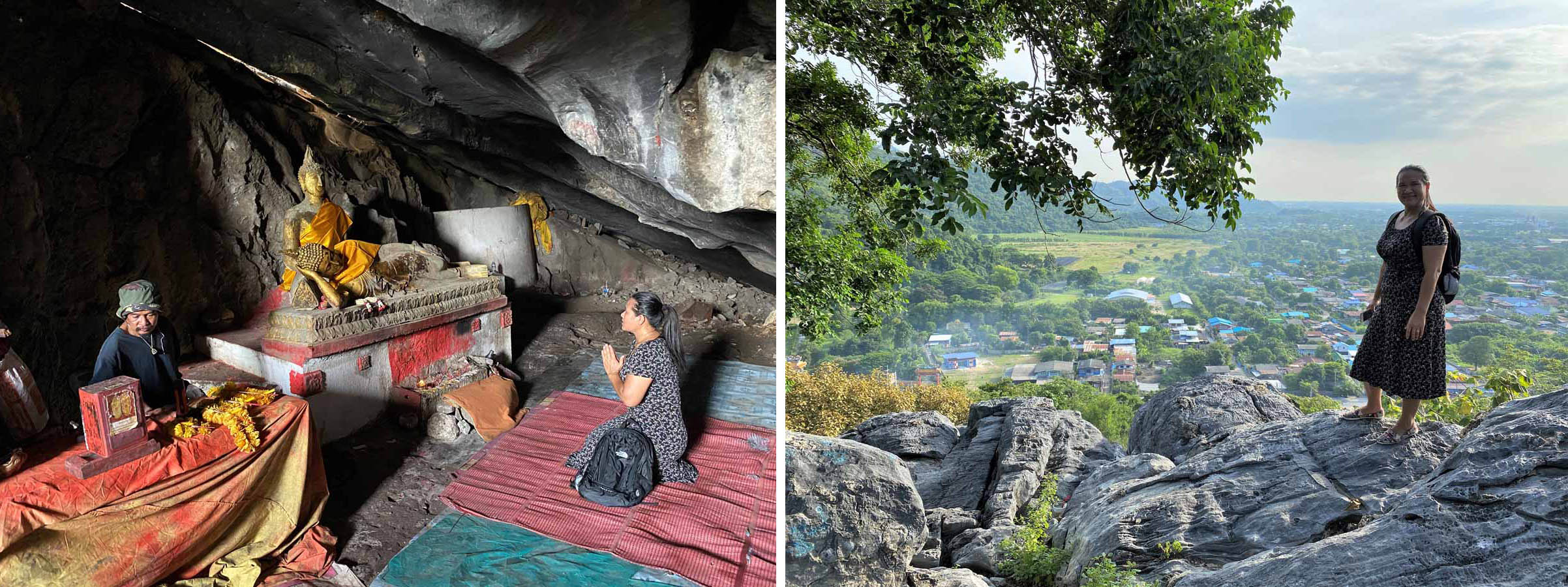 Si Satchanalai is set amidst hills and located about an hour’s drive (50km) north of Sukothai and attracts far fewer visitors, but has extensive Khmer ruins dating from the 11th century onwards, as well as temples from the later Sukothai period. In normal times with fewer visitors it is a more peaceful and quieter setting than Sukothai but whilst the Covid–19 pandemic persists there were few visitors at either location at the time of our visits. The ruins are found in two locations: Chaliang was one of the distant outposts of the Angkor empire based in present day Cambodia and offers Khmer ruins with later additions in the Sukothai style, whilst extensive Sukothai ruins dating from the 13th to 15th centuries are found just a few kilometers away in the Si Satchanalai Historical Park. The archeological excavations at Wat Chom Chuen have confirmed that settlement in this area was established in the 4th century at the beginning of the Dvaravati era.