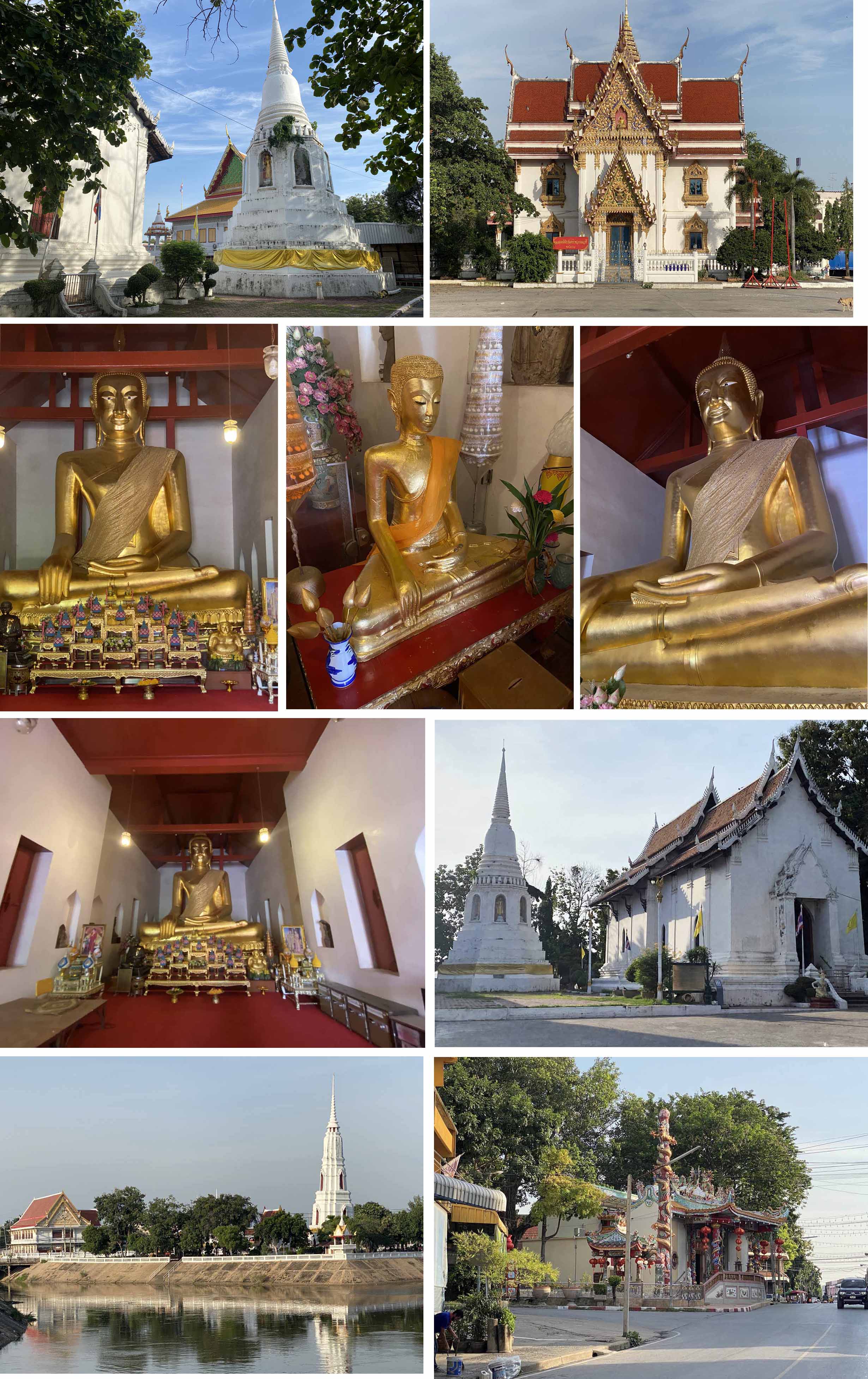 The large riverside Chedi dates from the late Sukothai period and is now crowned with a Burmese type umbrella added in the early 20th century.