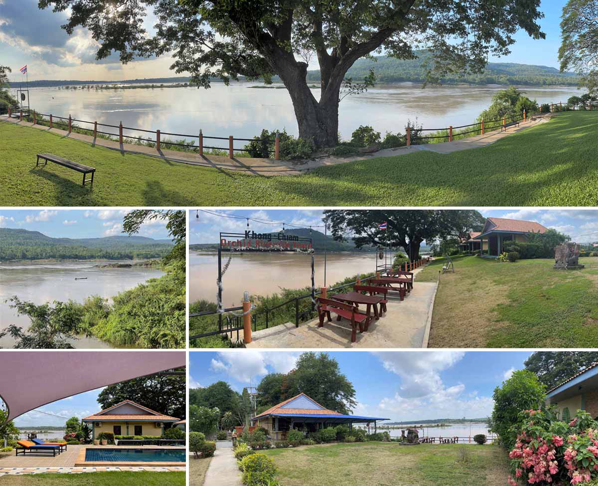 For the writer Khong Chiam’s biggest attraction is the Khong Chiam Orchard Resort, a small 6 unit resort owned by a German butcher (which explains the wide range of steaks and sausages on offer!) and his charming Thai wife. The small resort is situated on a spectacular riverbank location as fine as one will find anywhere along the Mekong in Thailand, with Laotian river islets less than 50 metres off shore!