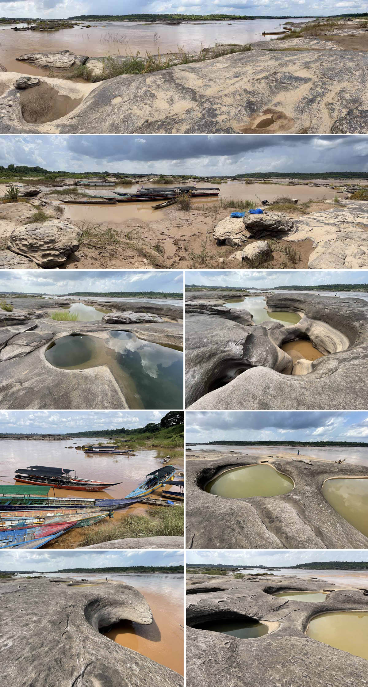This area of distinctive riverine landforms can be visited as a day trip from Khong Chiam but is one best visited if one is driving between Khong Chiam and Mukdahan. The Mekong and its currents have carved out almost 3,000 holes along the rocky shoreline, leaving it resembling a lunar landscape in the dry season when the Mekong is barely 50 metres wide. In non Covid times you can hire longboats from the locals for extensive exploration, but at the time of our visit, although no boats were available and every food stall was long since closed, we could still access many of the distinctive formations on foot.
